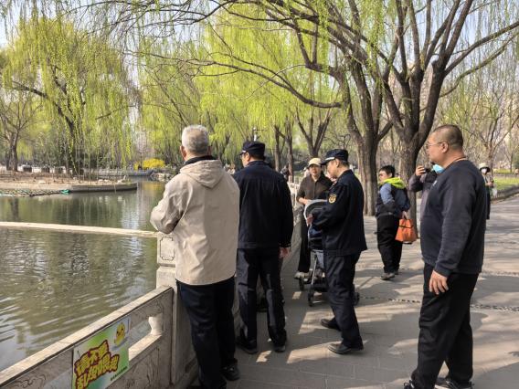 在公园休憩区,执法人员还通过发放宣传材料、现场互动讲解等方式,向游客细致宣讲《北京市公园条例》等相关法律法规,推动文明理念深入人心。