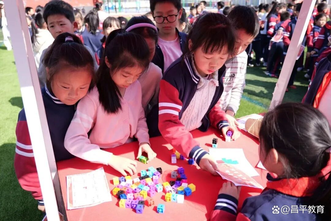 近日,北京一零一中昌平实验学校操场变身数学海洋,小学部首届数学文化节以“奔跑+智慧”的创新形式点燃校园——口算接力赛中,学生们边冲刺边答题,速度与准确率双重比拼,一、二、三年级优胜班级分别斩获荣誉;十大闯关游戏区热闹非凡,七巧拼拼乐、数独小迷宫、24点速算、华容道等趣味项目,让孩子们在图形拼接、逻辑推理、数字运算中脑力全开。