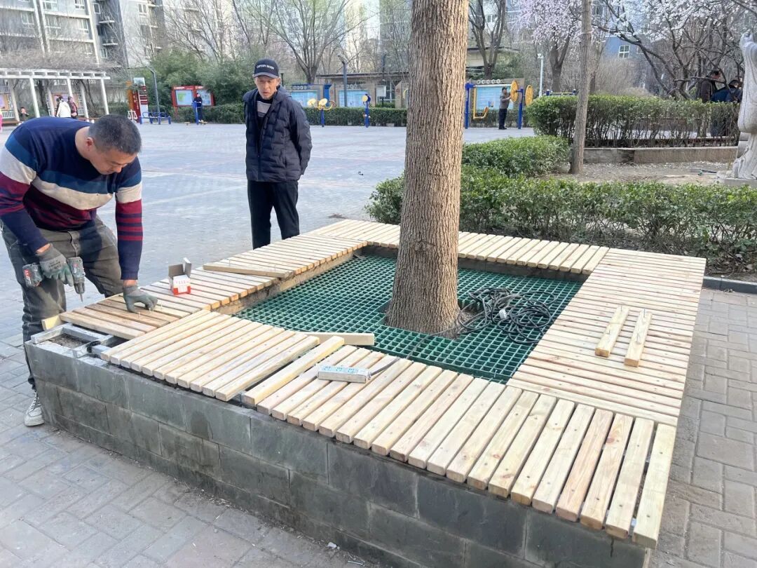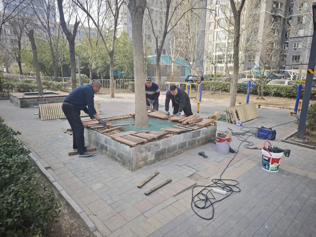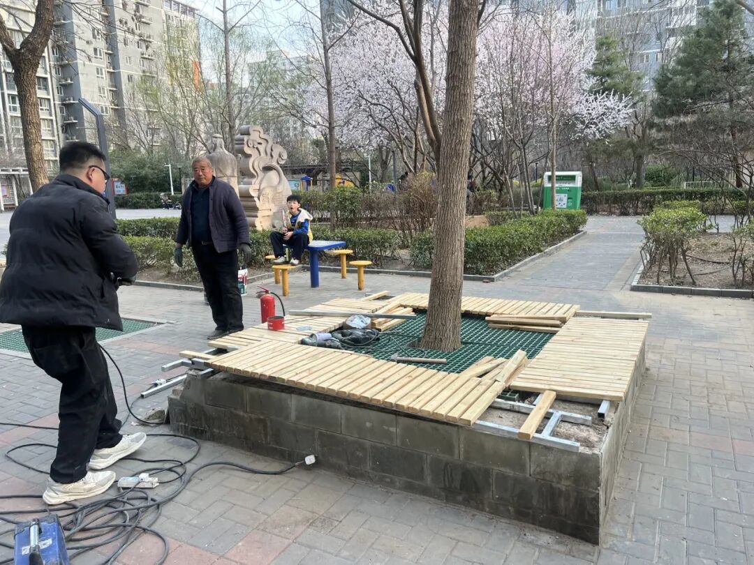 在圣馨家园小区,几处环树而建的木质休闲座椅,曾是老人们纳凉聊天、孩子们玩耍休息的“热门点位”。但常年日晒雨淋,木板逐渐缺失、开裂,不仅不好看,还藏着安全隐患。