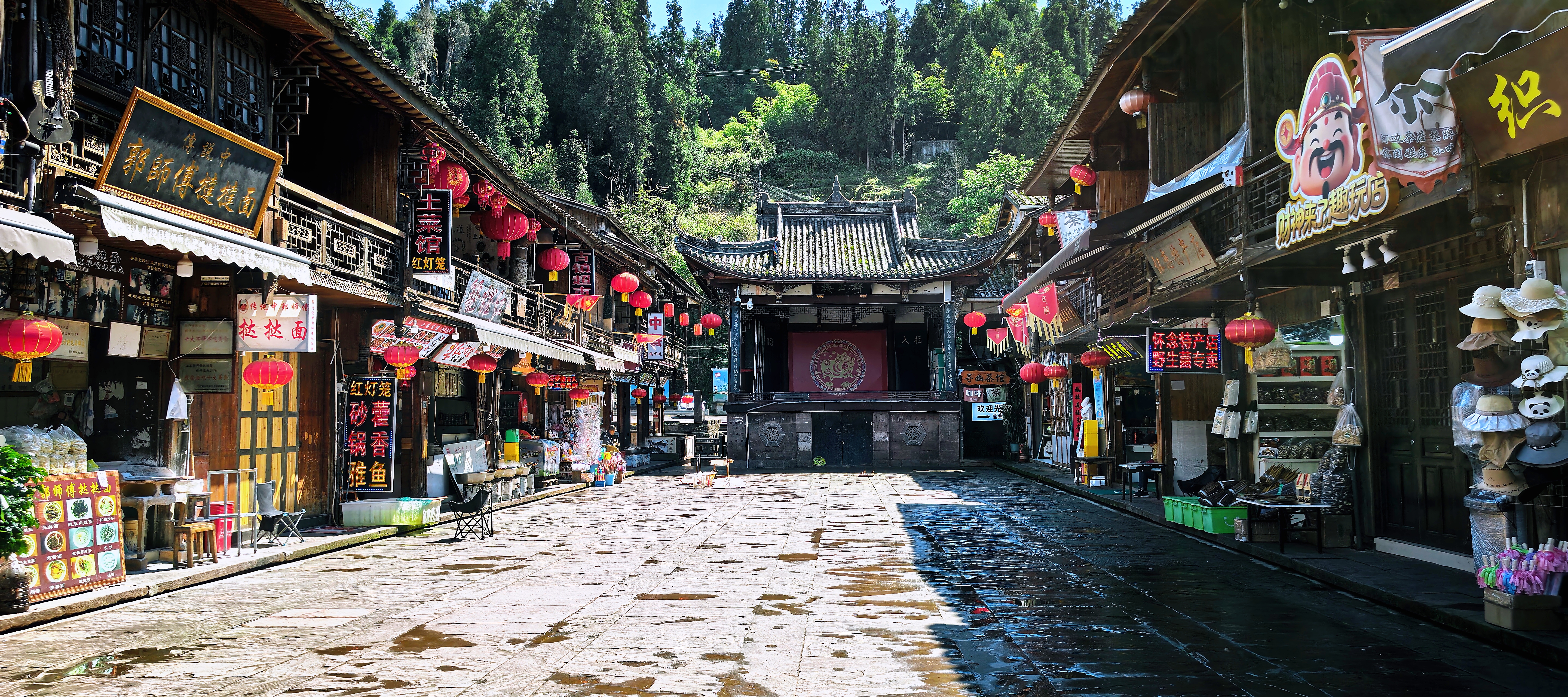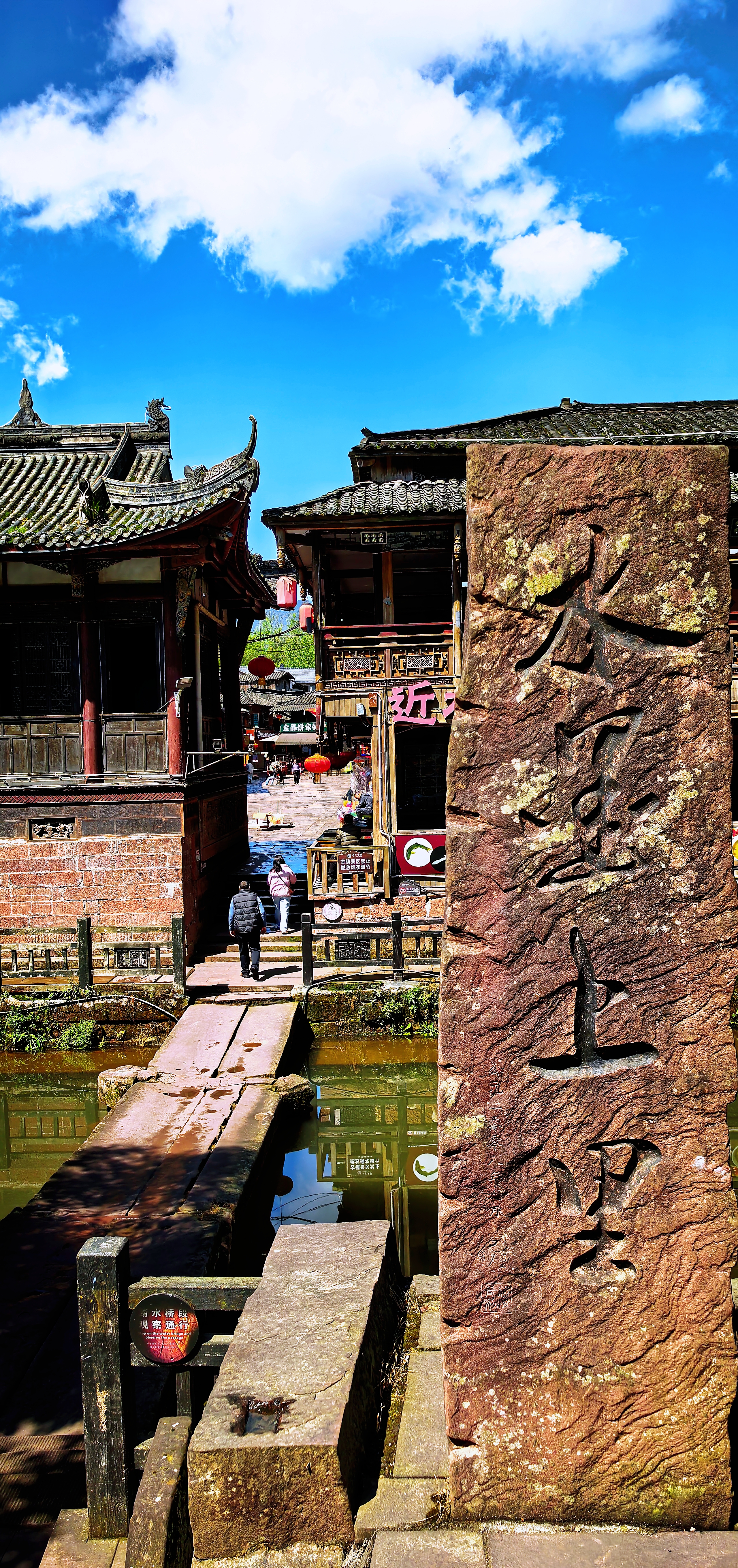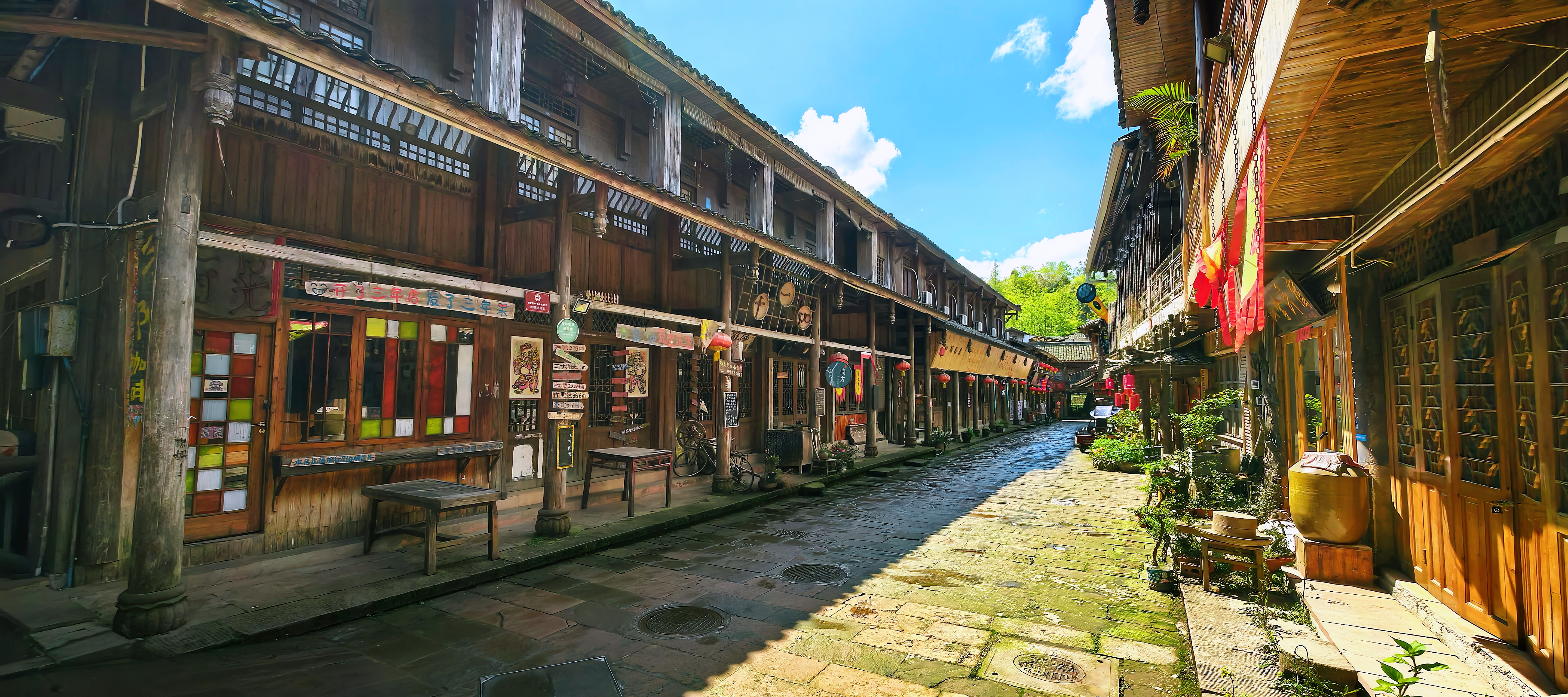 岁月流转,古镇风骨未变。1935年,红四方面军长征至此驻扎半年,在石壁、石桥上錾刻百余幅抗日标语,铿锵字迹穿越时光,为水墨古镇注入热血家国情怀,形成独有的“红军走廊”。