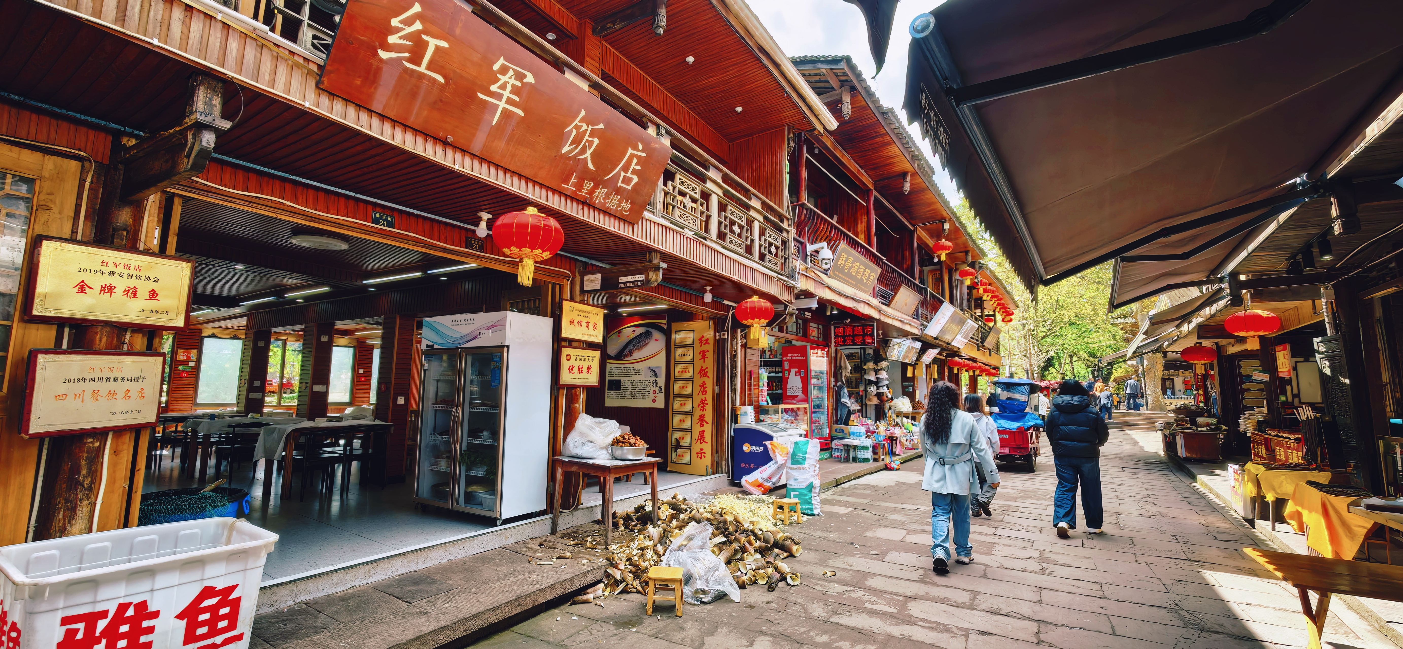 从雅安驱车抵达古镇时已近正午,老街深处一间茶铺飘出清洌茶香,寻着茶香走进店门,店主高杰热情地为我们沏泡新采的春茶。茶汤澄澈透亮,入口甘甜清爽,茶香沁人心脾。让我情不自禁地掏钱买了她家两款蒙顶山上好绿茶。