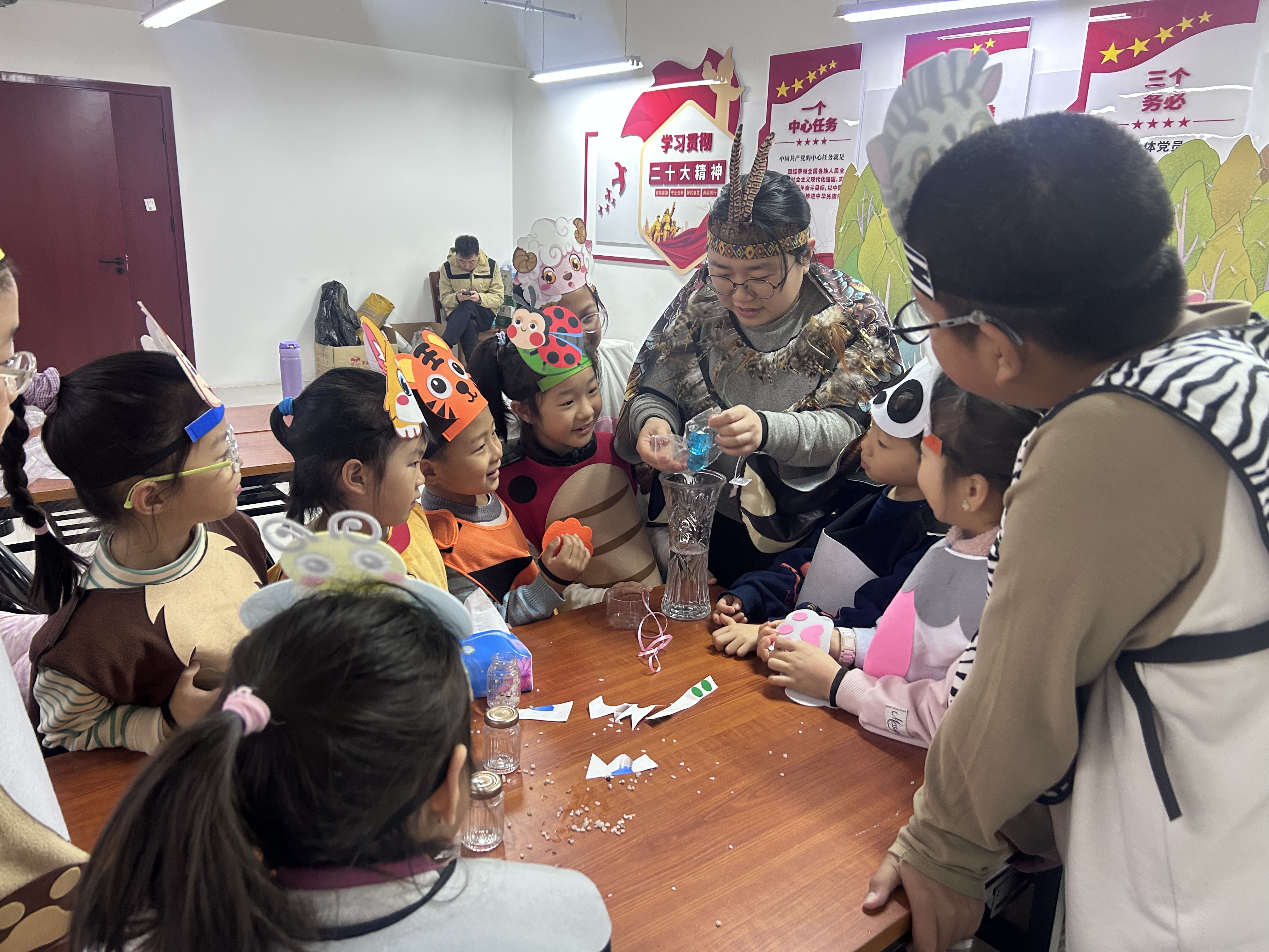 沉浸式场景与角色代入。社区空间被改造为充满童趣的“森林秘境”,工作人员化身“猫头鹰长老”,孩子们自主选择扮演“小斑马”“小狮子”等动物角色,成为肩负使命的“森林守护者”,全员沉浸于拯救被“灰色雾气”笼罩的森林叙事挑战中。