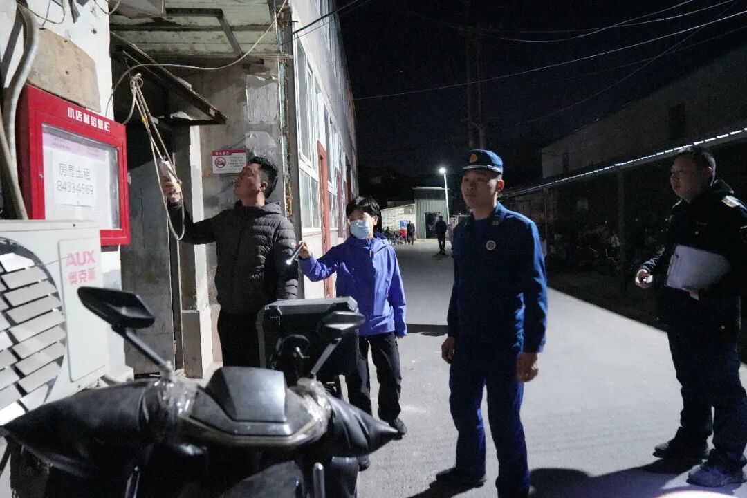 此次行动聚焦街头巷尾、房前屋后及村民经营性自建房内公共区域,重点检查电动自行车违规入户、占用疏散通道、飞线充电以及杂物堆积等问题。针对夜间隐患更具隐蔽性、反复性等特点,检查组采取逐街逐巷、逐户走访的方式开展排查,同步进行安全提示和规范引导。