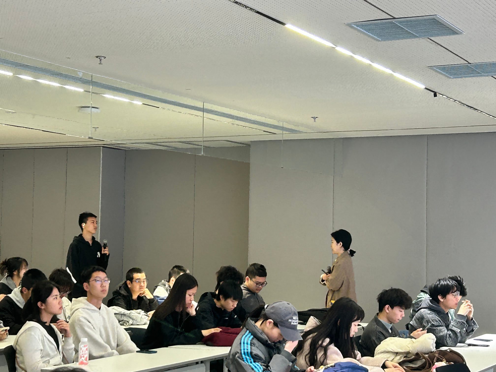 在交流互动环节,科大讯飞相关负责人详细介绍企业发展历程、技术布局、人才培养体系及未来发展规划,系统解读人工智能行业发展趋势与核心人才需求。企业HR围绕校招岗位、实习机会、招聘标准、职业发展路径等内容进行专项讲解,重点介绍了技术研发、产品应用、算法工程等与学院专业高度匹配的岗位方向,为同学们明晰职业规划和精准对接就业需求提供了务实指引。同学们则围绕专业学习、技能提升、实习投递、职业发展等问题踊跃提问,企业专家结合行业实践与招聘经验逐一细致解答,鼓励同学们积极参与实践项目,提升核心竞争力。
