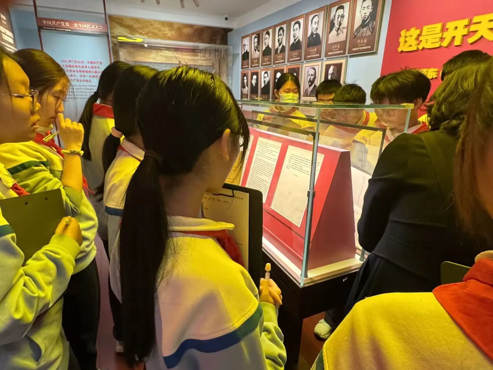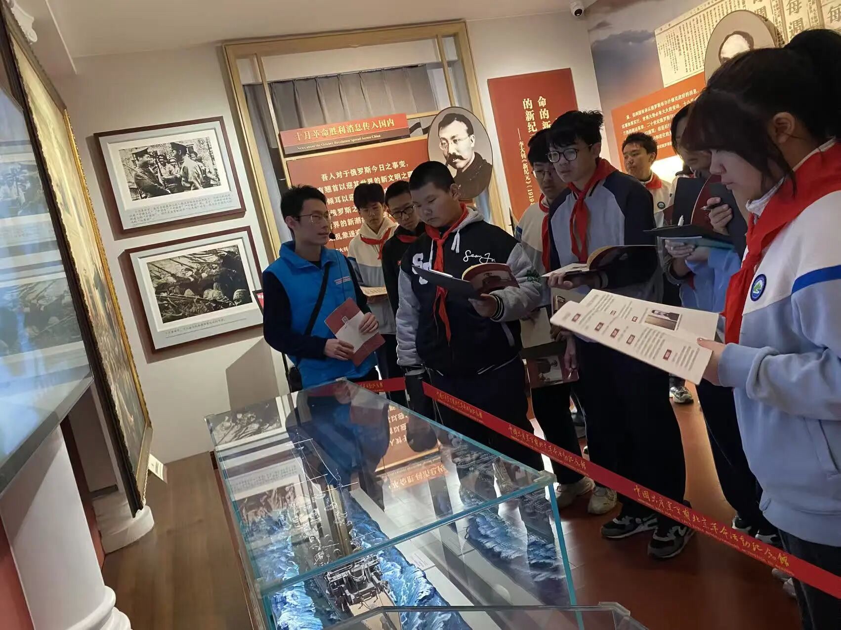 珍贵的文物、泛黄的照片、生动的场景复原,将中国共产党早期北京革命活动的光辉历程缓缓铺展。同学们在沉浸式体验中,感悟李大钊“播火者”的信仰力量,追寻青年毛泽东在京确立马克思主义信仰的足迹,深刻领会“南陈北李,相约建党”的历史意义。