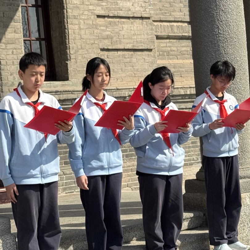 馆内专题学习结束后,全体同学在北大红楼前整齐列队,齐声诵读李大钊先生《青春》节选,字字铿锵、句句真挚,将新时代青少年的青春朝气与革命先辈的理想信念紧紧相连。