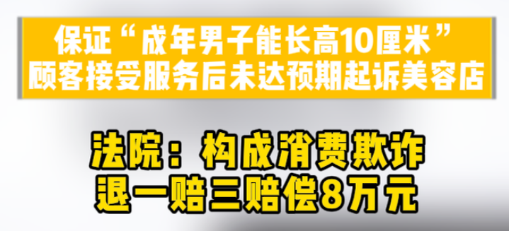 据此,法院判决:张某的行为构成欺诈,应就其存在欺诈行为的增高项目,向王某承担退一赔三的惩罚性赔偿责任。即,张某需退还王某已支付的该项目服务费2万元,并另行支付三倍赔偿金6万元,合计8万元。法院终审判决,旗帜鲜明地否定了这种违背科学常理的虚假营销,维护了消费者合法权益和市场诚信底线。