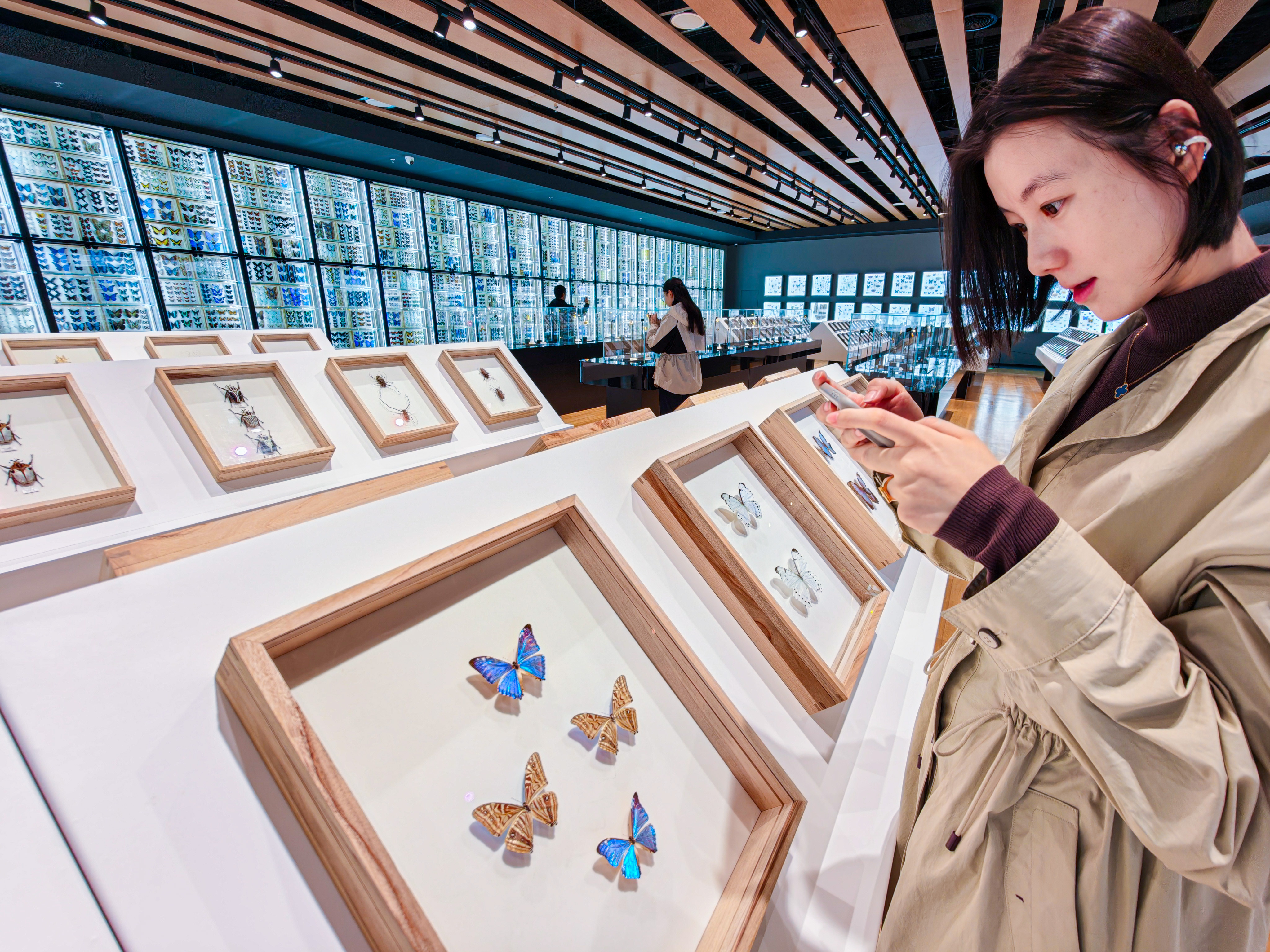 建设规模超3500平方米、上万件昆虫标本、上百只活体昆虫、数百件昆虫主题古董珠宝……4月9日,位于丰台区南中轴国际文化科技园3号楼3层的北京市自然昆虫博物馆正式开馆,以“自然叙事式观看标本+活体动物沉浸体验”为破圈核心,为南中轴地区博物馆集群再添一处兼具科普、审美与互动性的新地标。