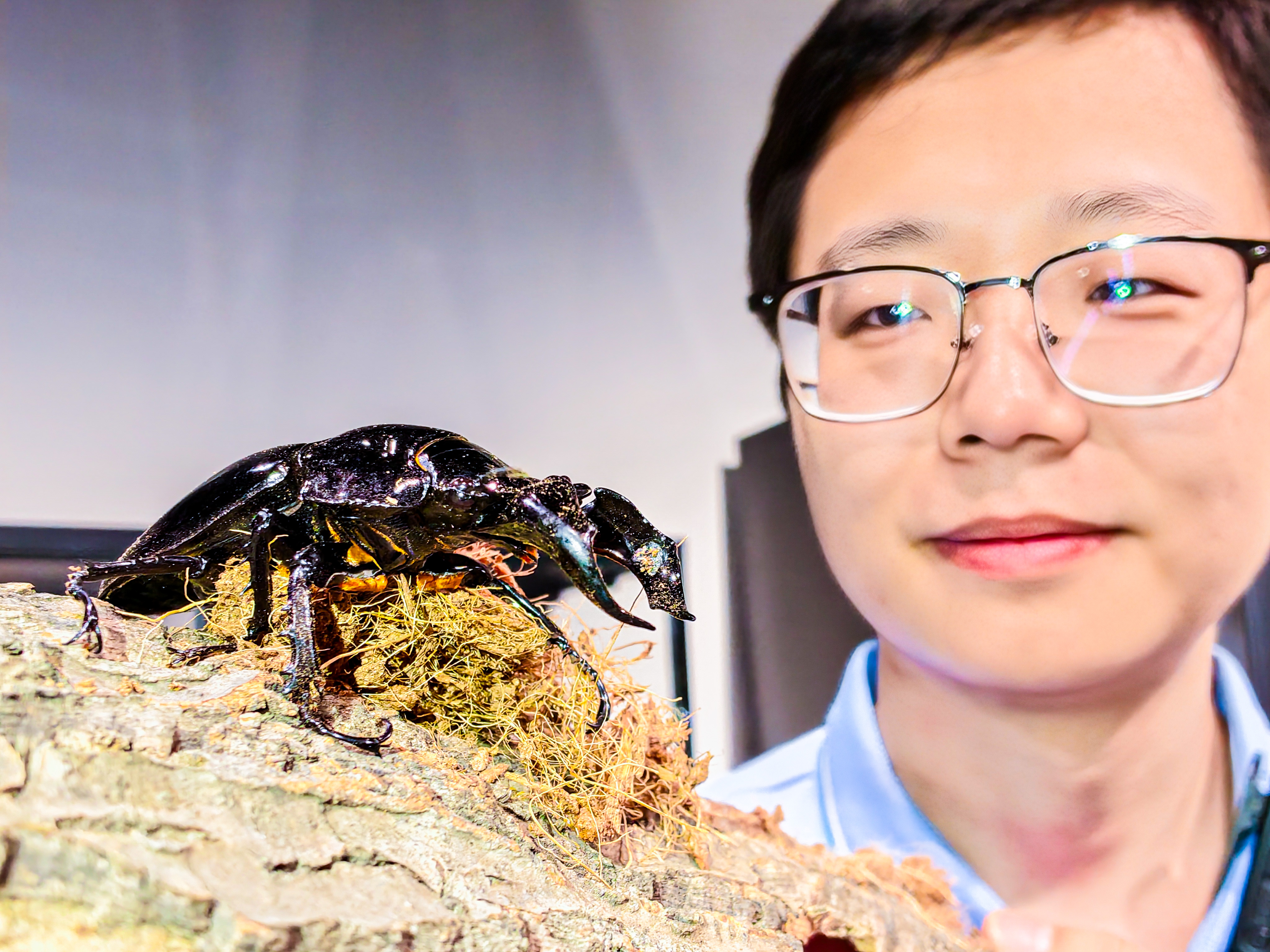 值得一提的是,博物馆打破了“静态展陈”的传统模式,还专门开放了活体昆虫体验区及相关延展服务区域。在这里,温顺可爱的宠物玉米蛇、“旅行青蛙”游戏同款青蛙、羞涩的松果蜥、伪装大师眼镜蛇枯叶螳螂等悉数亮相,市民尤其是青少年群体可以近距离观察昆虫的生活习性,提升对昆虫和自然的认知与热爱。“刚开始摸竹节虫还有点害怕,但是听讲解了解了它的生命历程后,觉得大自然的生命真的值得我们敬畏,这比在书本上学习更直观、更有趣,下次一定要带孩子来体验!”前来参观体验的游客王先生兴奋地说道。