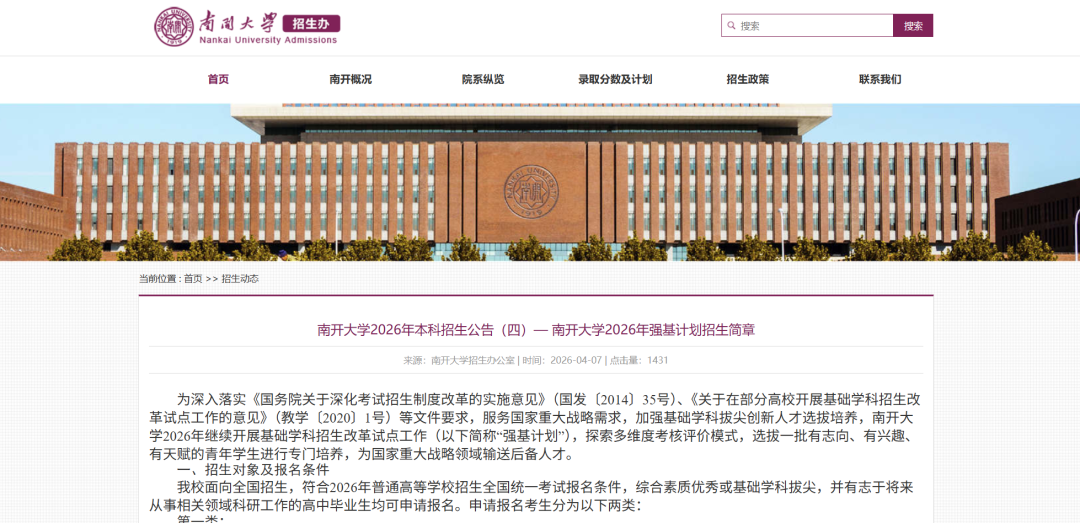 高校发布强基计划招生简章