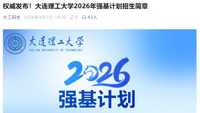 即日起至4月30日,考生可登录大连理工大学强基计划报名平台,按要求网上报名。