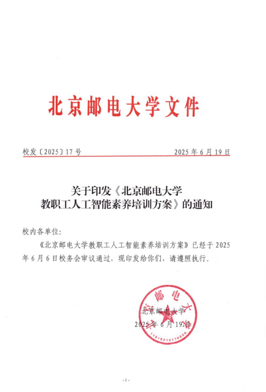 为深入实施国家教育数字化战略,贯彻落实教育部关于数字化赋能教师发展行动部署,北京邮电大学立足信息科技特色,强化顶层设计,将教师人工智能素养提升作为推进教育数字化转型的重要抓手,全面启动教职工人工智能素养提升计划。