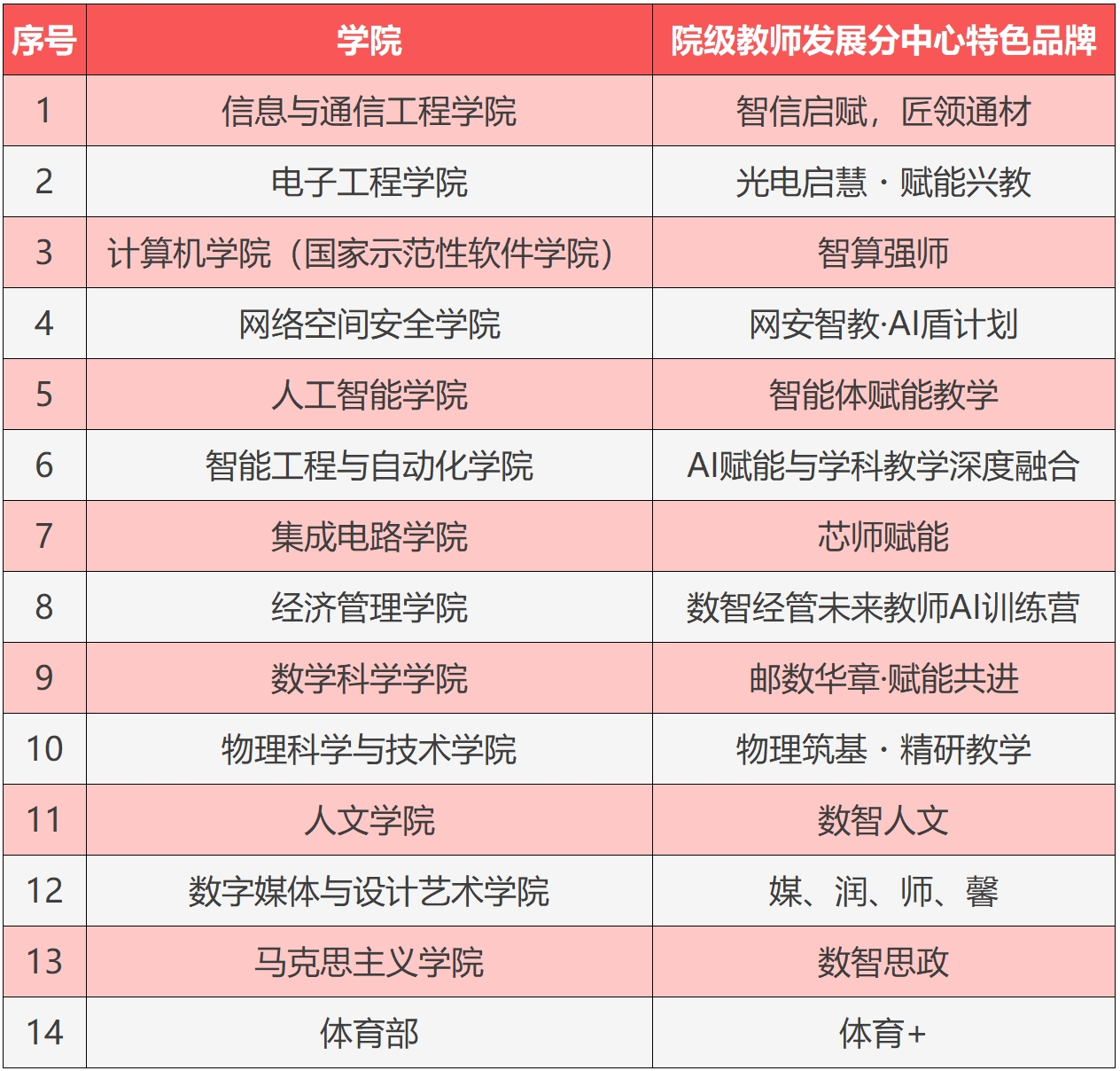 2.完善组织架构。构建教师发展共同体,成立人工智能赋能未来教育讲师团,建立校院两级教师发展中心协同联动机制,促进教师专业发展。14个学院/部均设立院级教师发展分中心,发挥各学院学科优势,逐步形成定位精准、特色鲜明、优势互补的教师发展工作体系。
