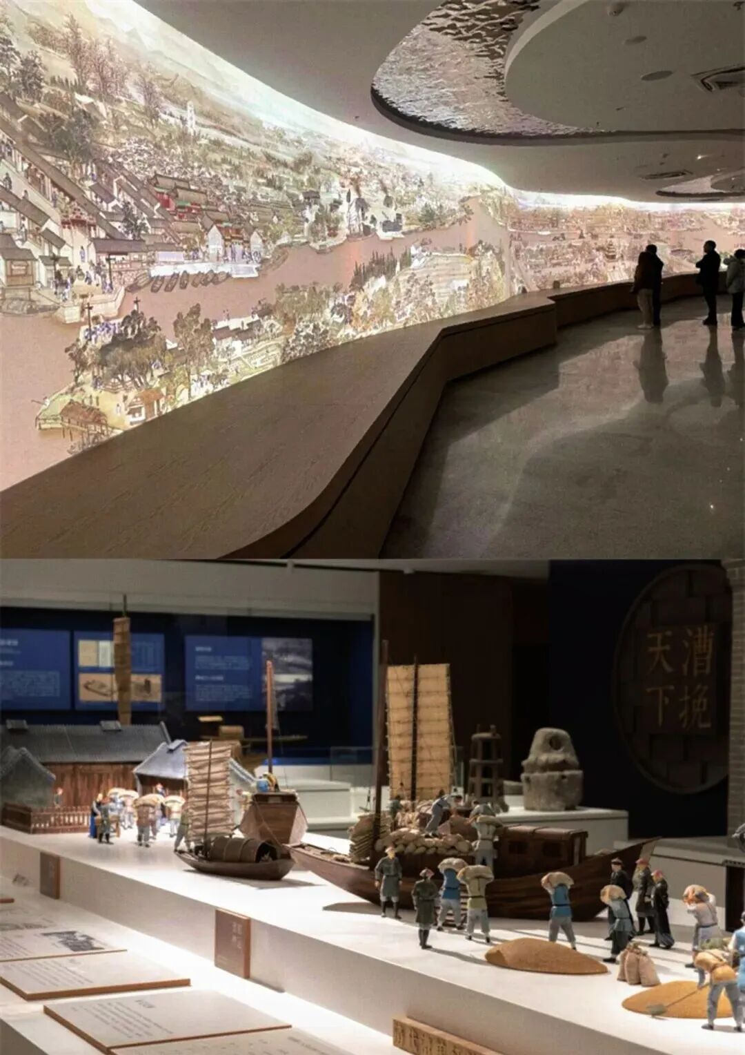 大厅展出的元代运船,仿佛跨越时空的界限缓缓驶来,承载着历史的记忆,自遥远的彼方摇曳而至,带游客窥见当年的运河风貌。