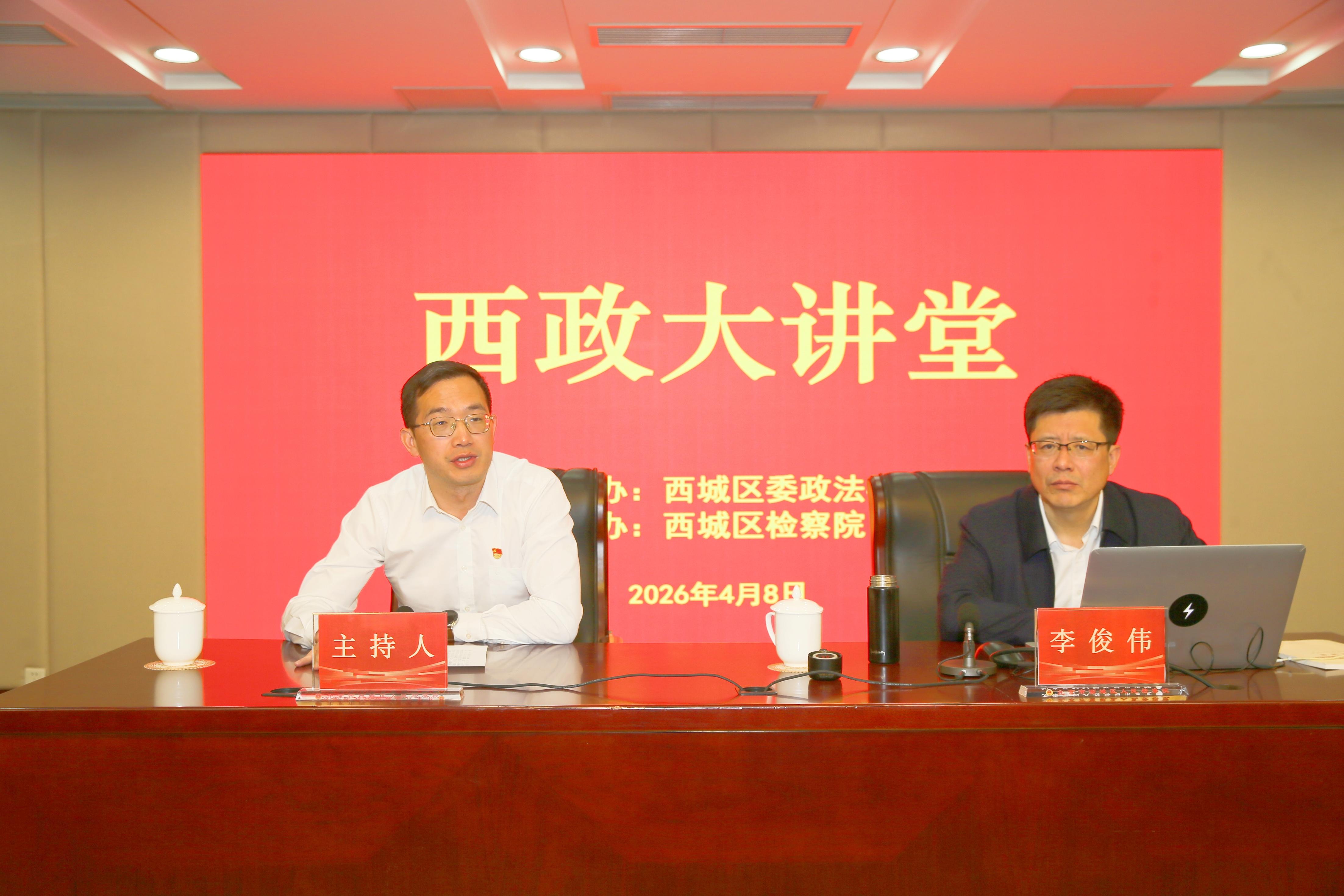 为深入开展树立和践行正确政绩观学习教育,引导党员干部落实“立党为公、为民造福、科学决策、真抓实干”总要求,踔厉奋发、担当作为,4月8日,西城区委政法委主办,西城区检察院承办的“西政大讲堂”2026年第一期暨西城区检察院党组理论学习中心组(扩大)学习、“明道讲堂”系列培训第三十九讲成功举办。本期培训特邀中央党校马克思主义学院教授、博士生导师,全国党建研究会特约研究员、中国领导学会常务理事李俊伟,以“学习习近平总书记关于树立和践行正确政绩观的重要论述”为题作专题辅导报告。