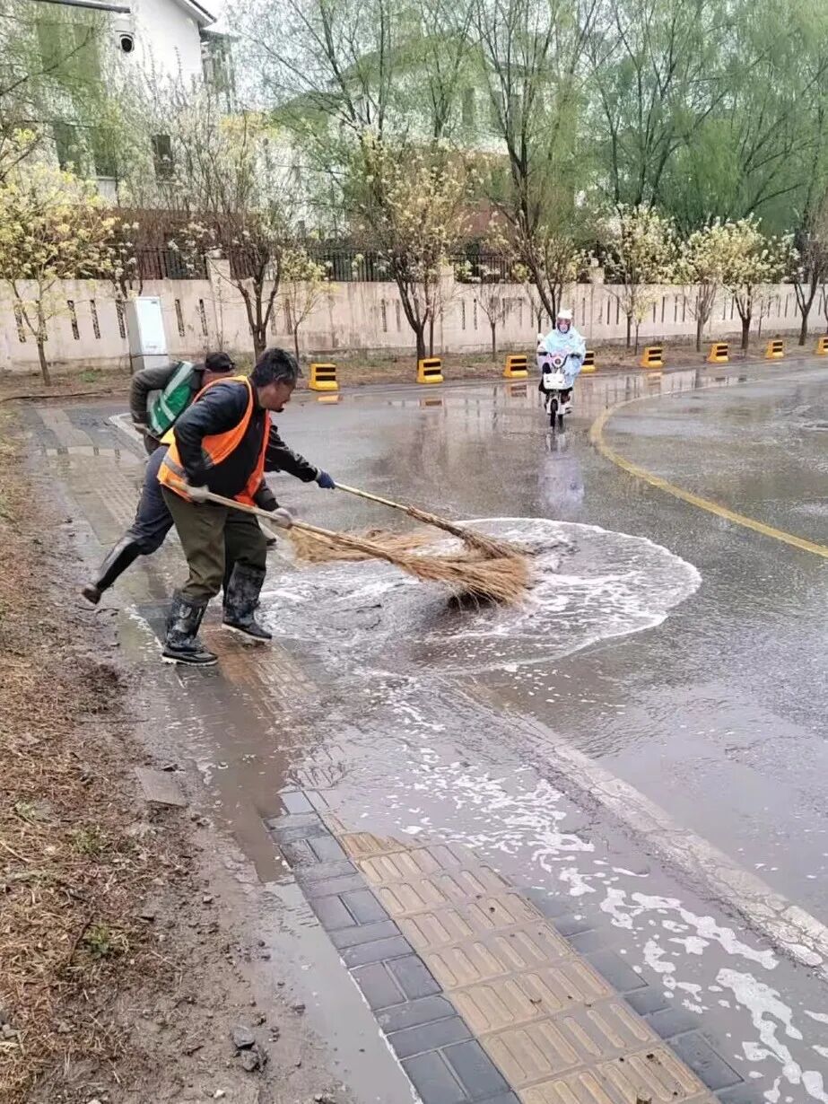 4月9日清晨,昌平区迎来降雨天气。回龙观街道提前部署、快速响应,组织工作人员对辖区易积水路段开展专项巡查与积水清理作业,有效防范路面积水对居民早高峰出行造成影响。
