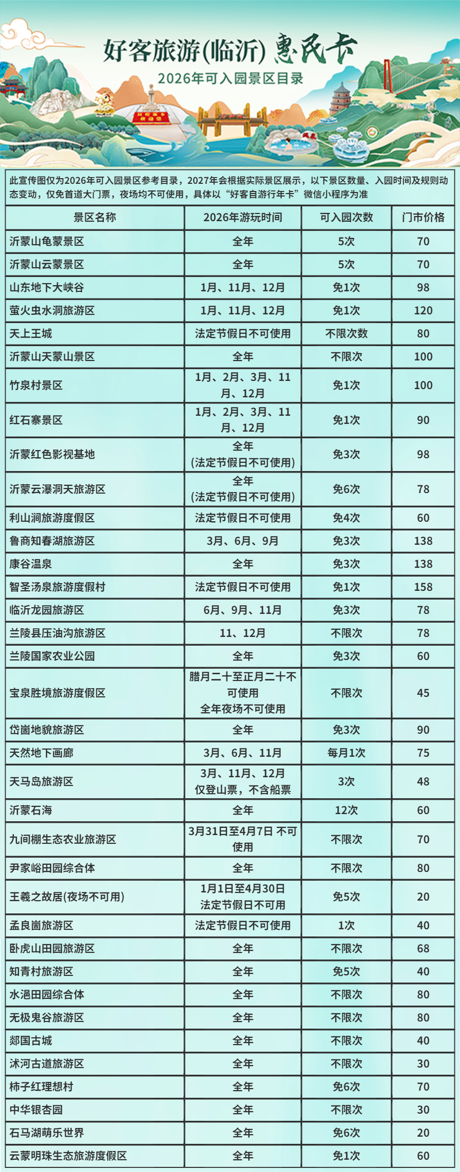 2026年4月20日前激活的老用户,琅琊古城与临沂海洋世界主题公园二选一权益不变。