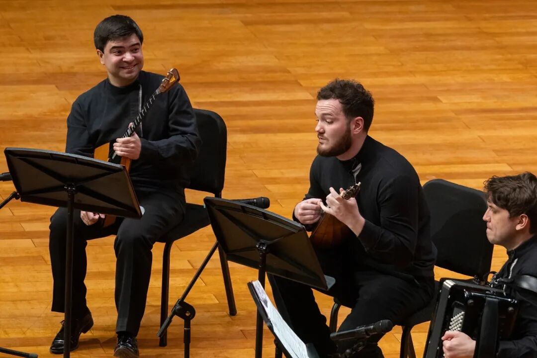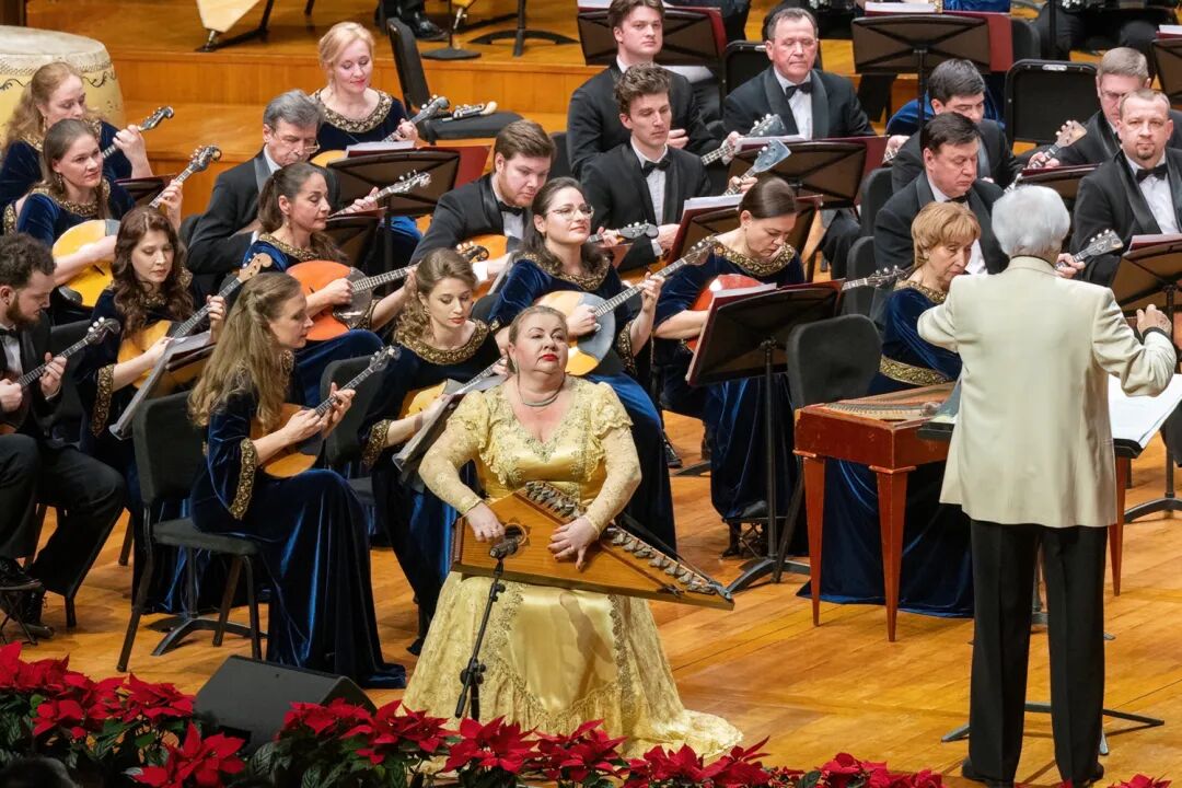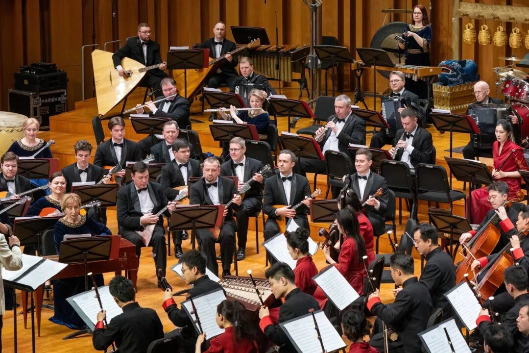 纵观整场音乐会,中俄民族乐队对经典曲目的交替演绎,不仅构成风格上的并置与对照,更是一场深层次的艺术对话。而其背后,则蕴含着两国民族乐队在组建理念、发展路径中的历史呼应。由当晚的音乐会呈现不难看出,俄罗斯民族乐队以弹拨乐器为主,整体音响更富颗粒感与节奏驱动性,因此在表现热情奔放、明快浓烈的作品时尤见所长。