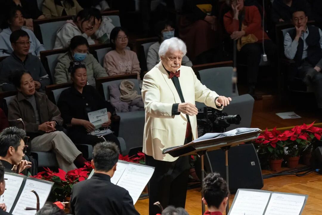 在观众经久不息的掌声中,两国乐团先后返场演奏了各自民族音乐的经典代表名作《花好月圆》与《月光曲》,将音乐会的情感余韵进一步延展。尤为令人惊喜的是,最终两位指挥并肩执棒,率领联合乐团共同奏响《卡林卡》,将全场气氛推向沸腾的顶点。