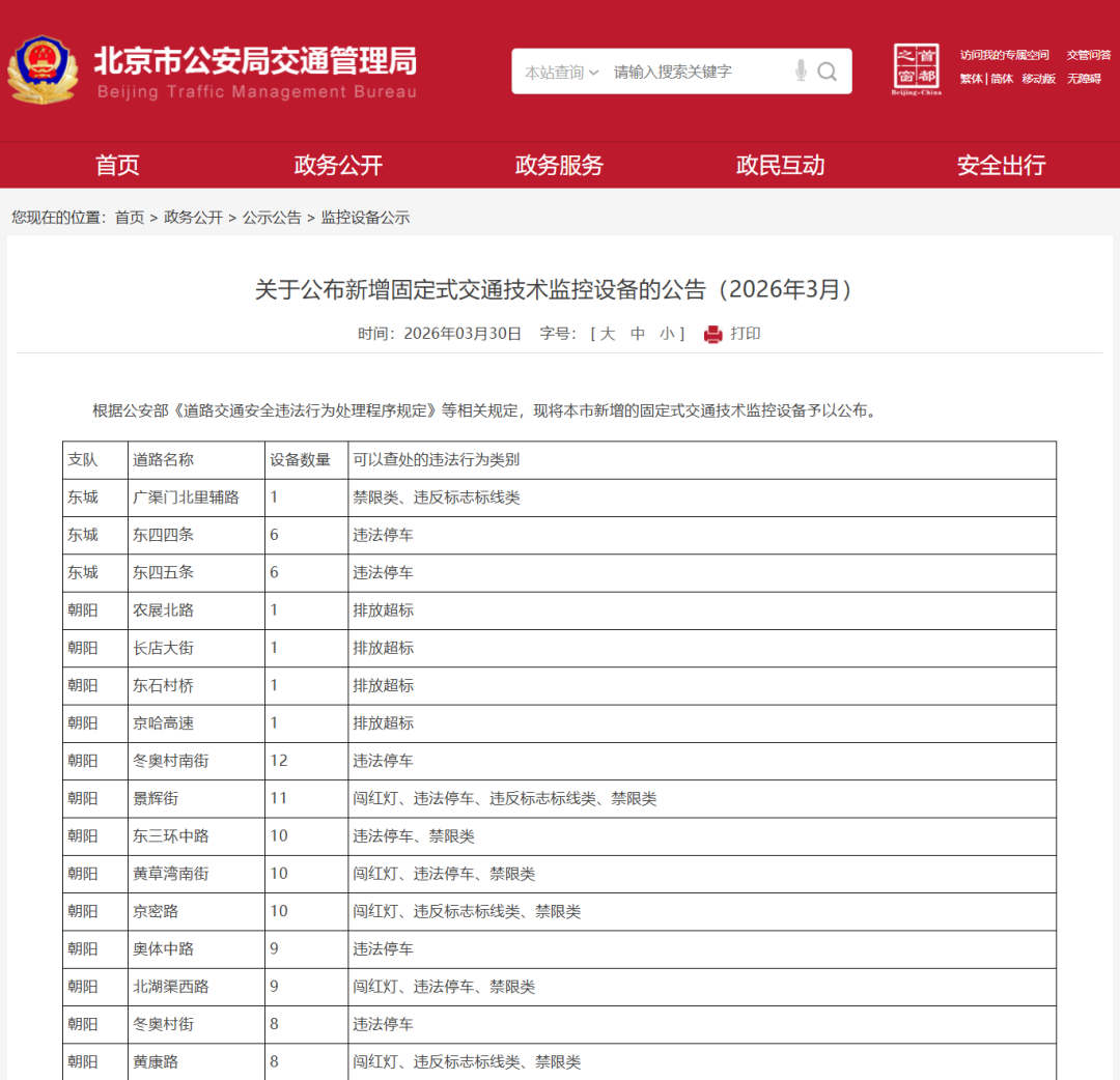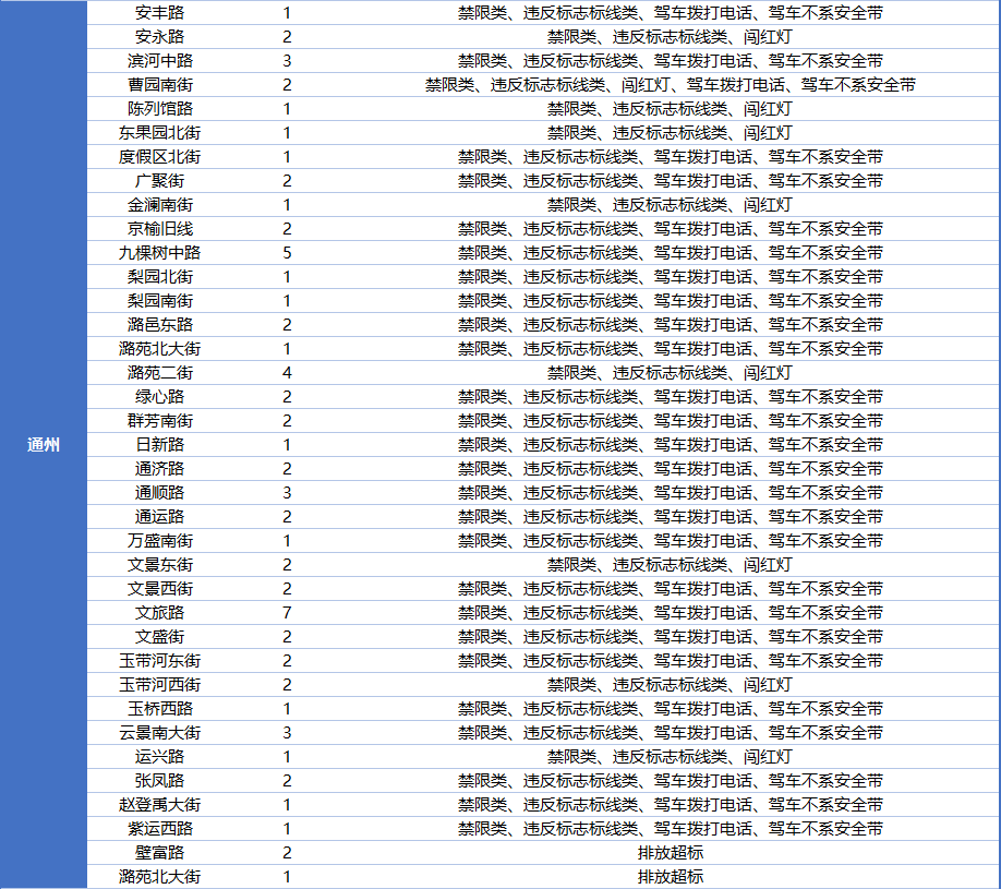 近日,北京市公安局交通管理局发布公告,公布了一批固定式交通技术监控设备。北京279处道路新增了1127个“电子警察”,重点监测禁限类、驾车不系安全带、驾车接打电话、违反标志标线类、闯红灯、违法停车等违法行为。