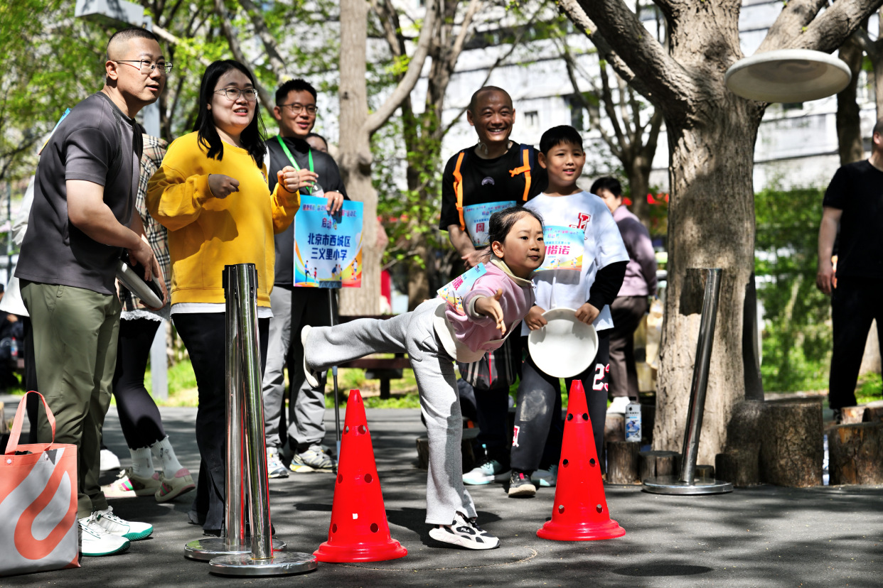 记者现场了解到,活动以家庭为单位,孩子与父母佩戴号码布有序参加6个项目的比赛。西城区广外街道办事处副主任王程告诉记者,比赛项目既有考验技巧的足球绕杆射门、定点投篮,也有锻炼协调能力的1分钟跳绳、踢毽子,还有充满乐趣的沙包投准、飞盘九宫格等。丰富的项目贴近青少年的成长节奏,鼓励孩子们在运动中享受乐趣、增强体质、健全人格、锤炼意志。