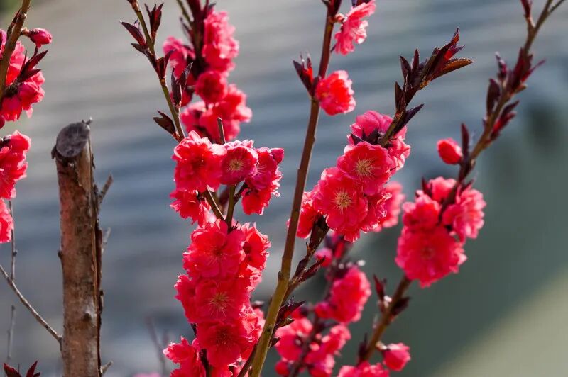 桃花攒簇的花团摇曳生姿