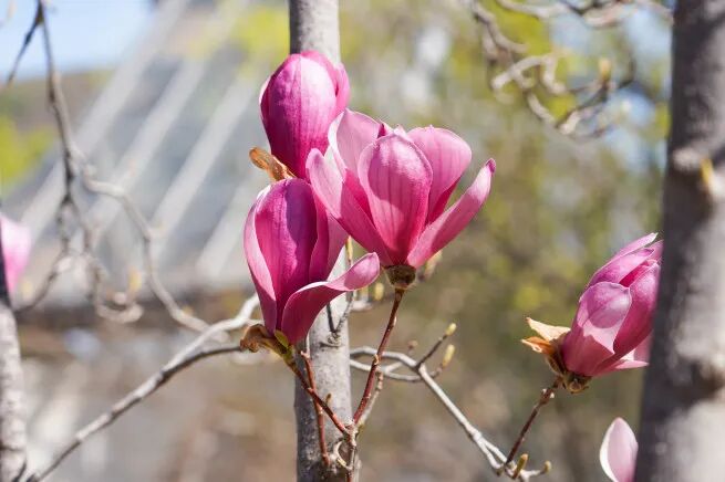 晴空下玉兰花兀自盛放的身影