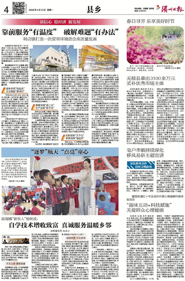 奖补力度再加大。今年,无棣县将结合上级最新政策要求和无棣经济社会发展实际,继续出台成就企业家梦想系列惠企政策,拿出真金白银为企业纾困解难,为企业加油鼓劲。截至目前,该县已制定了包括加快重大项目建设、加大创新创业力度、深化新旧动能转换、推动企业扩量提质、强化人才队伍建设、提升三产发展水平、筑牢本质安全根基在内的7个方面19条支持措施,拟安排5000万元奖励资金,全方位支持市场主体高质量发展。