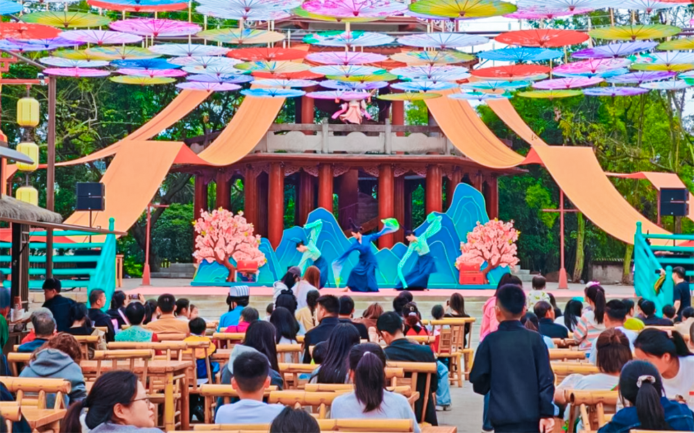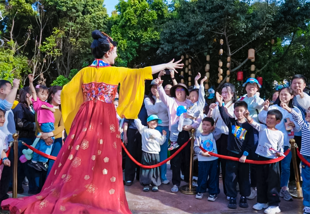 清明假期,南充电影工业职业学院(以下简称“南影”)音乐表演、戏剧与影视表演、播音与主持三个专业的20余名学子,化身灵动NPC,走进南充熊猫三国城,深度参与活动,以专业之力赋能地方文旅,在沉浸式实践中书写青春答卷,也开启了该校与当地文旅项目合作的生动实践篇章。