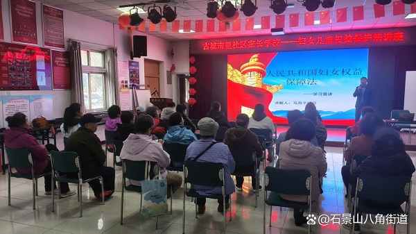 为进一步提升辖区妇女群众法治意识,强化依法维权能力,推动法治理念深入基层、走进家庭,4月7日至10日,八角街道妇联联合北京新领域律师事务所,精心组织开展八场专题法律公益讲座,覆盖辖区25个社区,为广大妇女群众和居民带来精准、实用的普法服务,参与妇女240余人次,服务家庭500余户。
