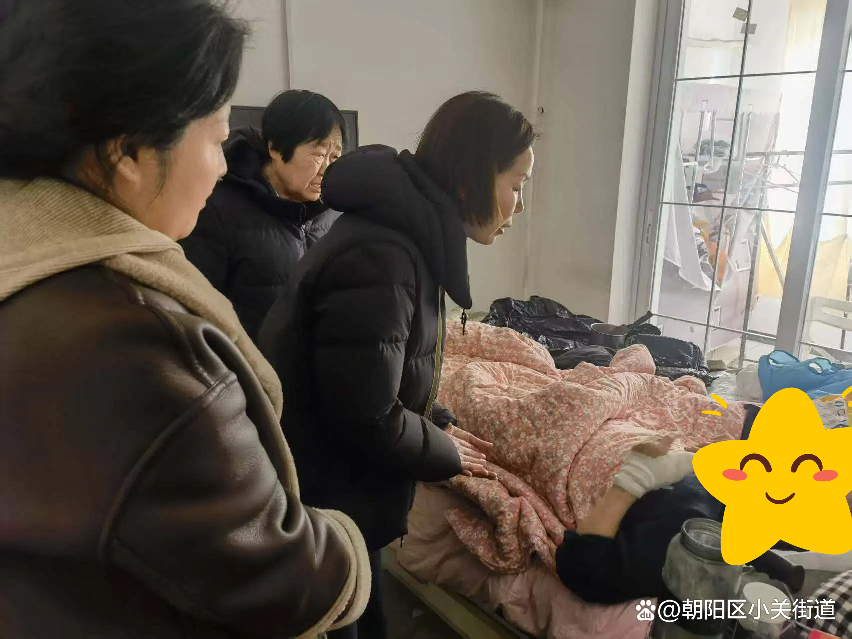 考虑到老人脚部骨折未愈,如今手部又添新伤,行动极为不便,大家二话不说,撸起袖子合力清理房间,消除安全隐患。
