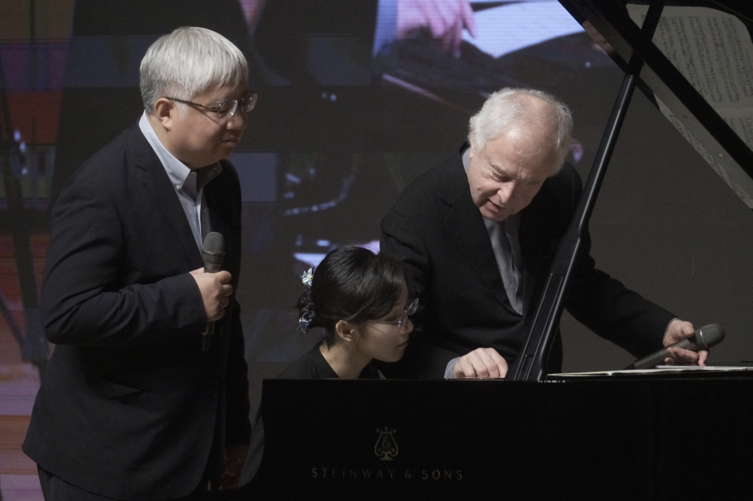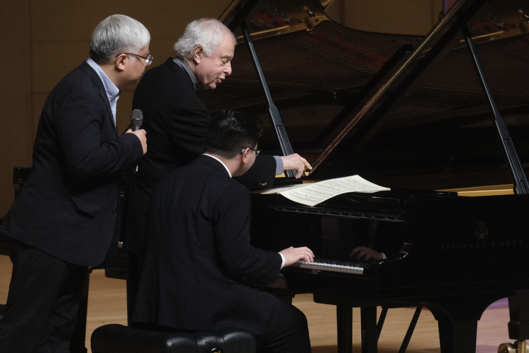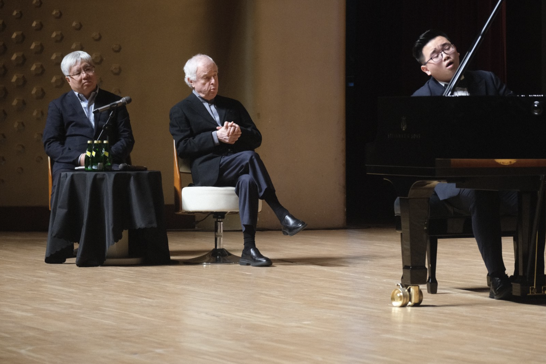 在教学过程中,席夫从不吝于将演奏中的审美传递给年轻一代。他强调演奏过程中“第三只耳朵”的内听能力——演奏者要专注追踪自身发出的声音。他在舞台中央时坐定的姿态、示范时对每个音符近乎虔诚的触碰、讲解时自然流露的幽默与严谨,无不彰显出严谨审慎的学术精神与令人信服的艺术洞见,这让这堂大师课愈发深刻。