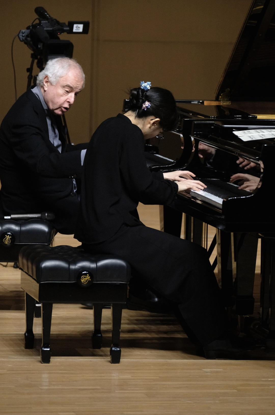 4月初,匈牙利裔英籍钢琴家安德拉斯·席夫爵士再度踏上中国巡演之旅。这位巴赫诠释领域的标杆性人物与京城乐迷重逢,以《哥德堡变奏曲》等巨作奉上多场现象级音乐会。对中央音乐学院钢琴系的师生而言,更为珍视的时刻发生在中央音乐学院歌剧音乐厅的方寸之间。4月4日,这堂别开生面的大师课由中央音乐学院钢琴系主任韦丹文主持,钢琴系教授盛原担任翻译。两位优秀学子——青年钢琴家李哲翔、王丽雅分别演奏了莫扎特与贝多芬的钢琴奏鸣曲。席夫针对演奏内容进行现场讲解,他以一贯的谦逊之姿与锐利洞察为在场聆听者重绘了德奥音乐的长卷。