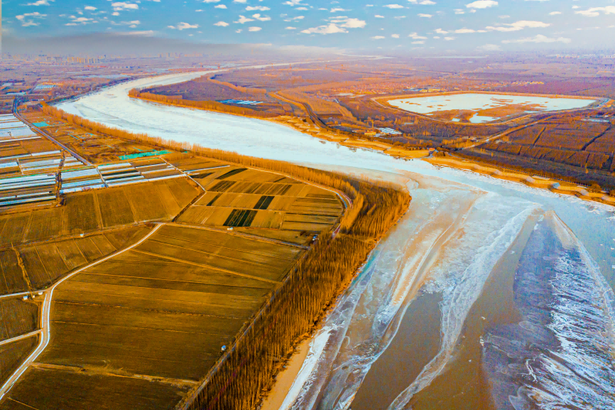 黄河浩荡奔涌东流,苍茫壮阔,气势雄浑;岸滩湿地绿意初生,大河奔涌气象万千;大河奔流不息,尽显齐鲁大地的厚重气魄。一川大河载春,让奔涌与辽阔尽显山河风骨。