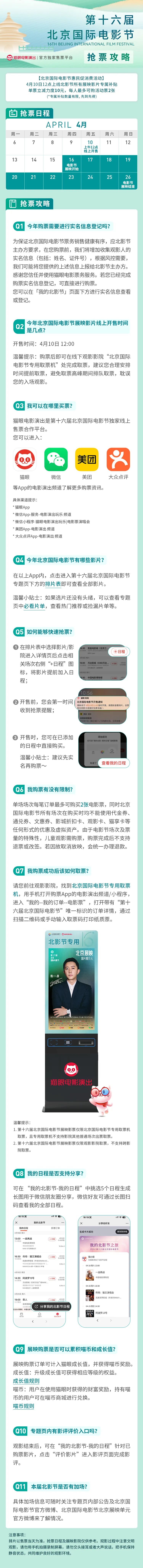 目前,“第十六届北京国际电影节”专题页面已在猫眼App、微信App、美团App、大众点评App的电影演出频道内上线。4月10日中午12:00,“北京展映”将正式开启线上售票!值得一提的是,今年的北京国际电影节还开展了惠民促消费活动,4月10日中午12:00同步上线北影节所有展映影片的专属补贴,单票立减力度10元,每人最多可购活动票2张。大家可通过以下渠道,获取更多购票资讯及服务: