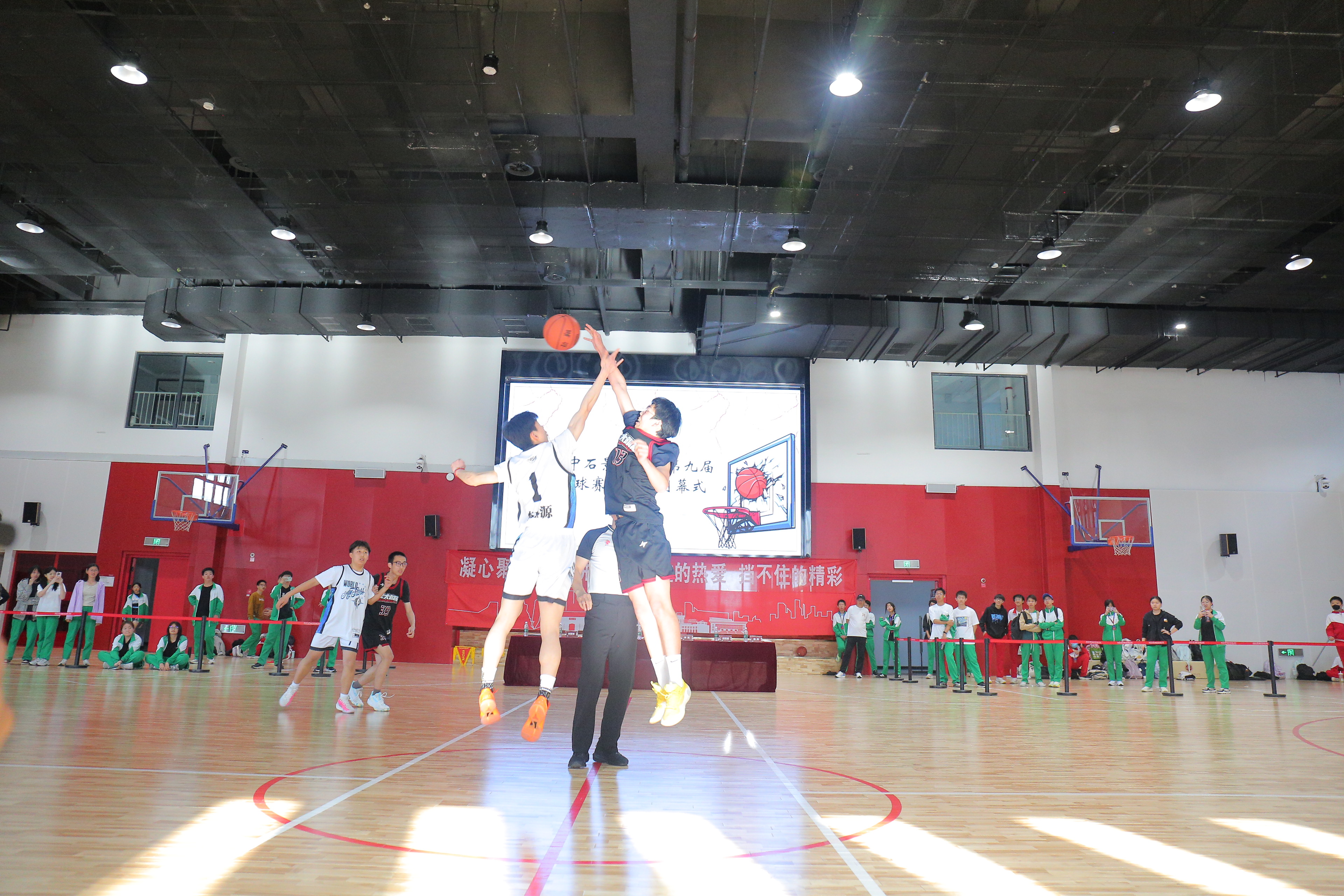 近日,北大附中石景山学校第九届校园篮球赛决赛暨闭幕式在学校篮球馆举行。本届赛事作为学校“班超”系列联赛的核心品牌,覆盖全校各年级,共吸引66支男女班级队伍参赛。赛事历经小组循环赛与淘汰赛两个阶段,完成180余场精彩对决,真正实现“班班有队伍、人人能参与”,充分展现了学校全员体育、健康育人的鲜明特色。