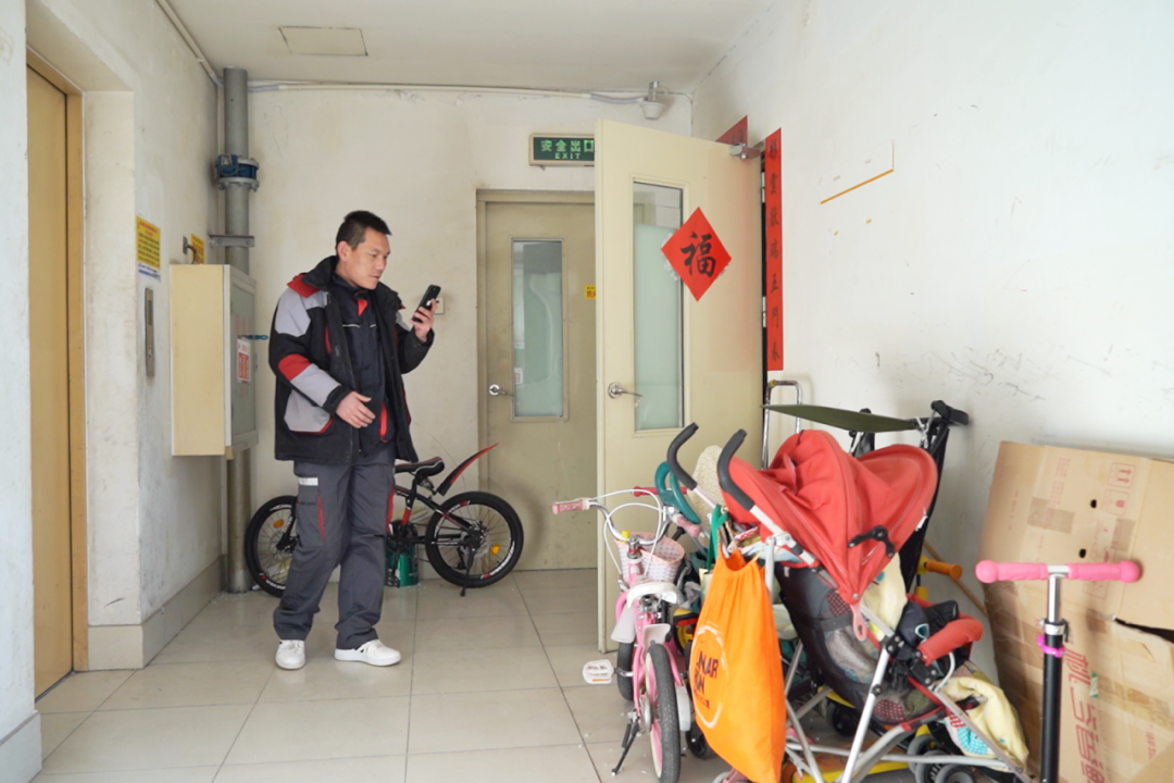 张同全顾不上手中的订单,立即联系单元住户协助拨打物业电话求助,为后续处置争取宝贵时间。物业人员赶到现场后,迅速进行处理。从发现隐患到处置完毕,仅仅用了10分钟。因处置及时,未造成财产损失和人员伤亡。
