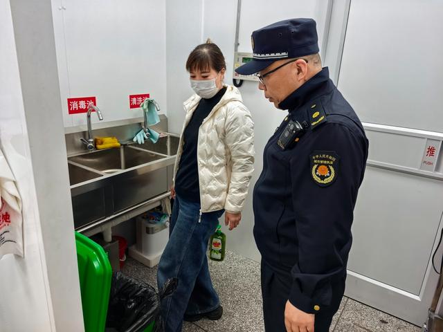 没有会议室里的照本宣科,执法人员直奔“灶台一线”。在多家餐饮店后厨,执法人员手持检查清单,像做精细“体检”一样对垃圾桶配置、分类投放情况、收运台账等环节逐一“扫描”。