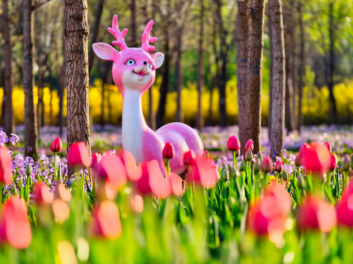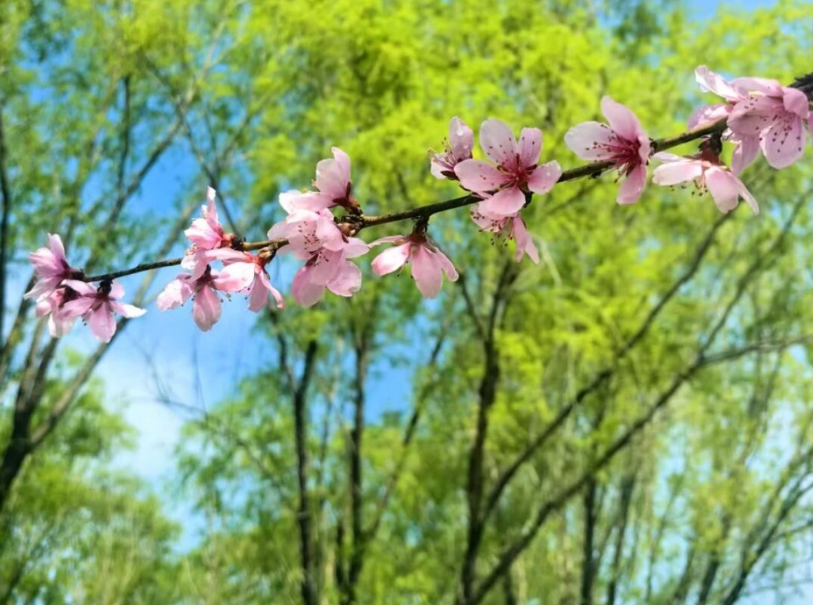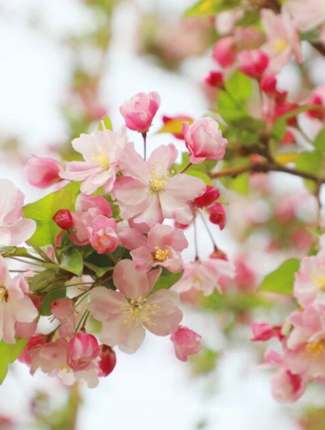 粉色郁金香开得端庄又娇媚,而再往前走几步,海棠花正开成一片粉色的云。一边是郁金香的亭亭玉立,一边是海棠的繁花似锦,两种粉色,一种浪漫。微风吹过,花瓣轻轻落在肩上,仿佛春天在耳边说悄悄话。粉色不争艳,却最懂春天的温柔。