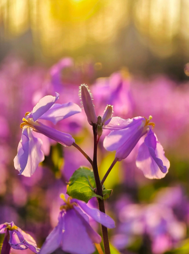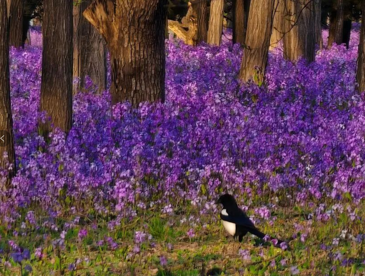 紫色郁金香高贵而神秘,像一位安静的诗人。而在林间树荫下,二月兰正悄然连成一片紫色的雾。郁金香的紫是浓墨重彩,二月兰的紫是轻描淡写——两者相映,像一场不愿醒来的春日梦境。紫色,是春天写给大地的浪漫暗号。