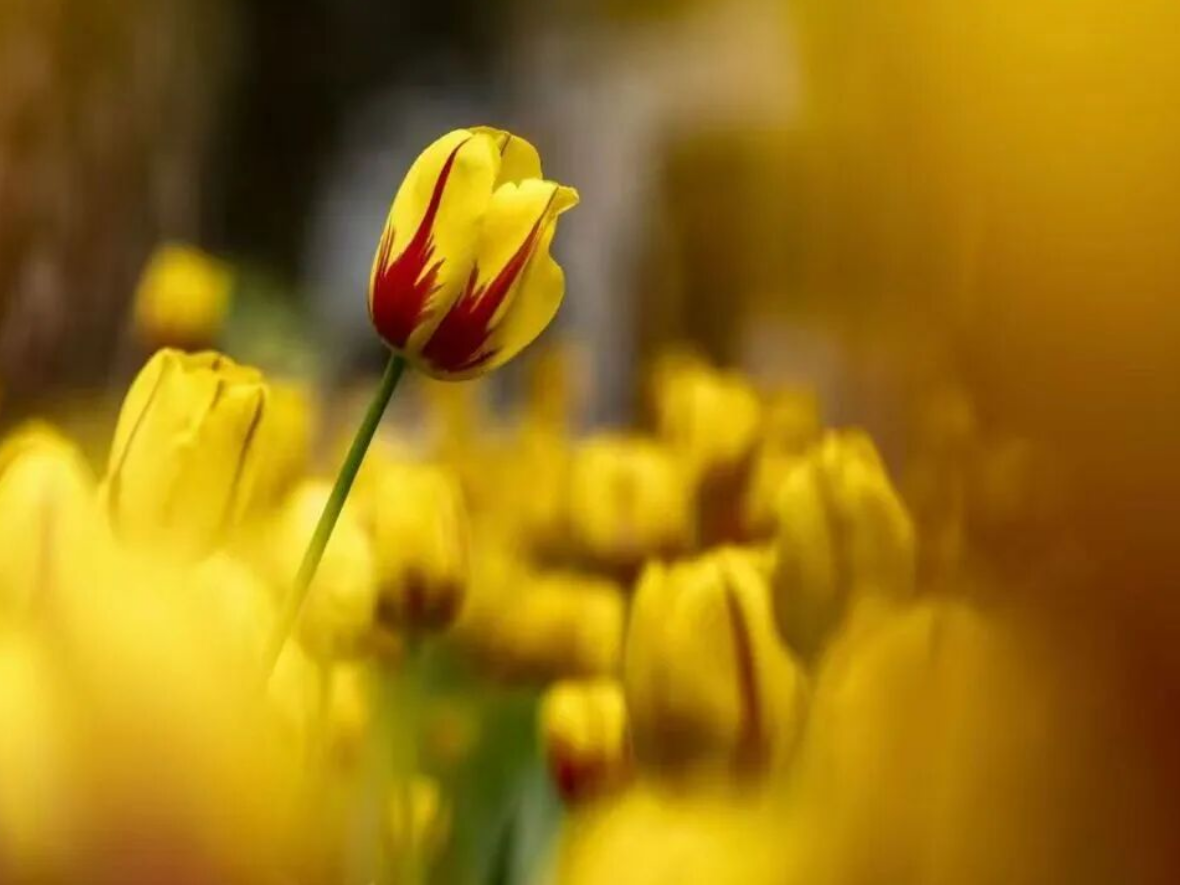 黄色郁金香像一只只金色的酒杯,盛满阳光。而港湾另一侧的油菜花田,则把这份灿烂铺到了天边。金黄与明黄交相辉映,明亮得让人眯起眼睛。站在花间,连心情都被染成了暖色调。把阳光穿在眼里,把灿烂装进心里。