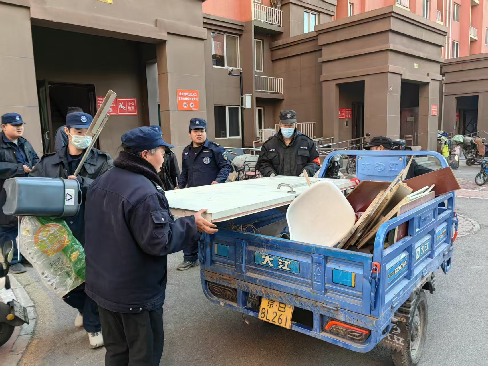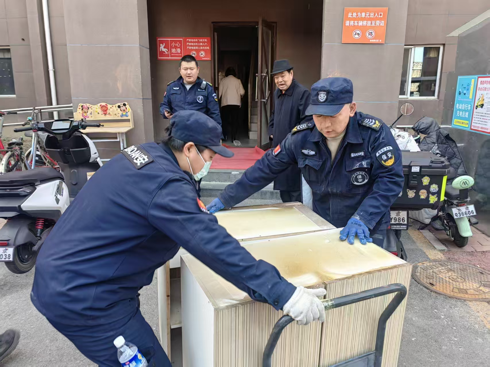 社区没有采取简单粗暴的“一刀切”清运,而是逐户上门做思想工作,跟居民算“三笔账”。讲消防隐患,算“安全帐”;谈居住品质算“文明账”;讲换位思考,算“邻里账”。工作人员最多的上门六七次,耐心沟通,帮助想办法。有的“顶天立地”的大柜子用螺丝固定在墙上,社区联合物业和“帮清小分队”提供专业工具协助拆除;有舍不得扔的旧物件,社区在19号楼小广场组织垃圾分类驿站废物回收活动,让“废物”就地“变现”。