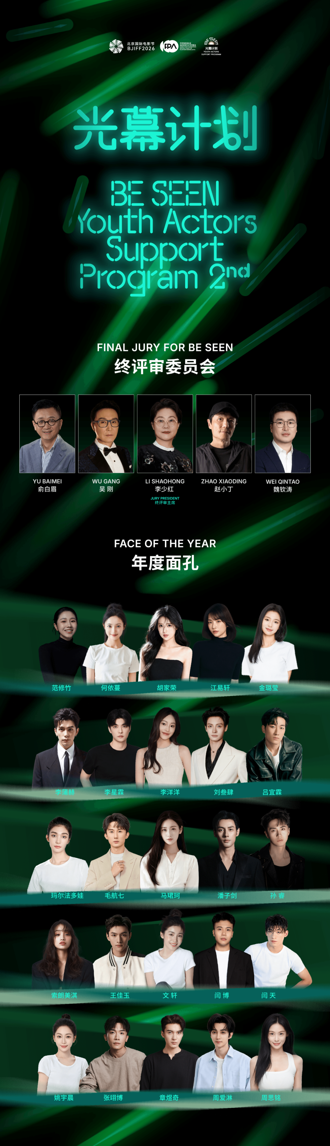 辨识这份真实,需要深耕岁月、敬畏专业的目光。为此,我们荣幸地邀请到李少红导演担任第十六届北京国际电影节BE SEEN 光幕计划终评审主席,赵小丁、吴刚、俞白眉、魏钦涛担任终审评委。他们以多年的创作生命为标尺,为这份最终的年度面孔入选演员名单注入了厚重的公信力与深远的期待。