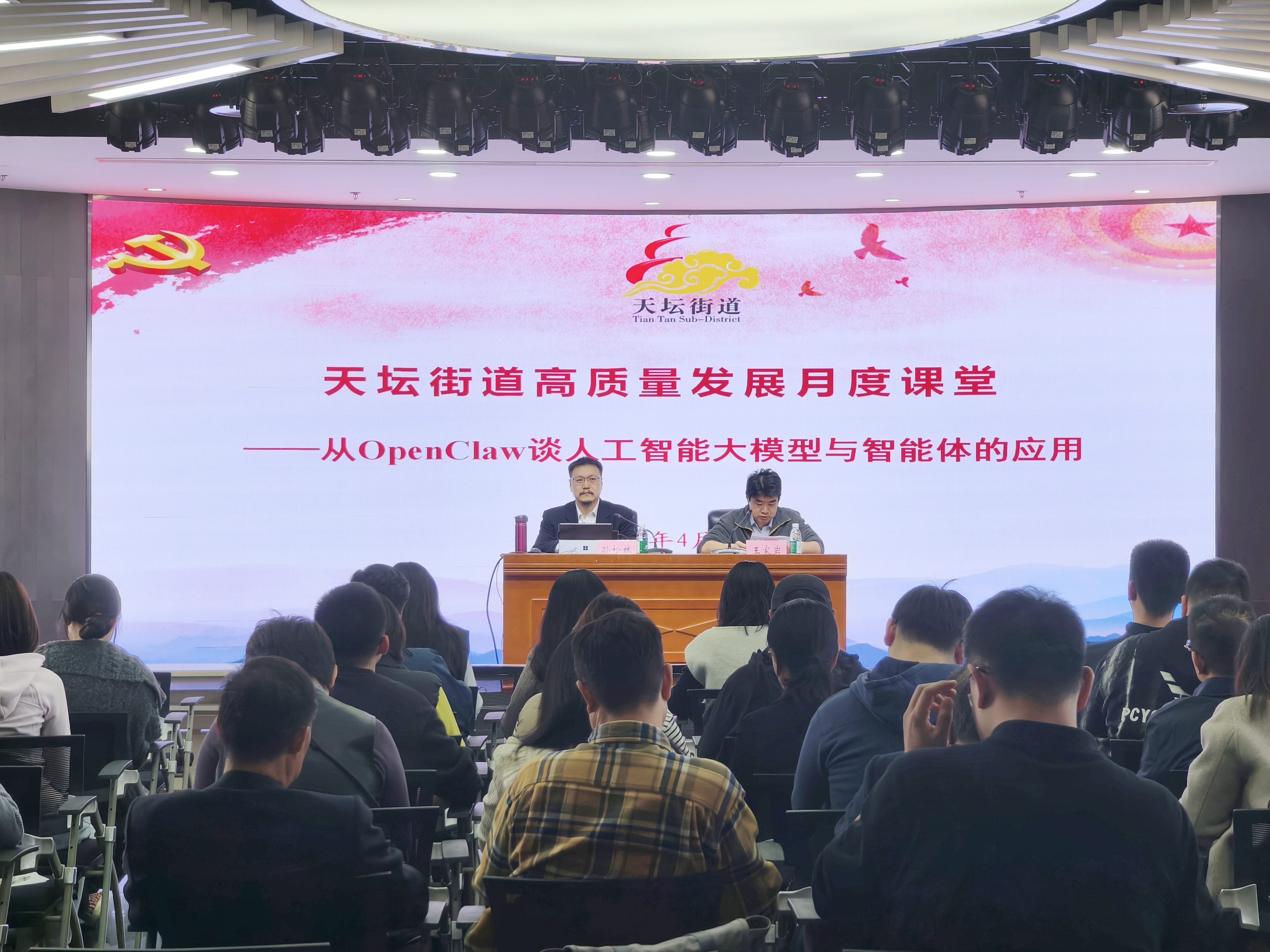 为深入学习贯彻习近平总书记关于发展新质生产力的重要论述,主动拥抱以人工智能为代表的新一轮科技革命浪潮,进一步提升干部队伍与首都功能核心区发展相适应的专业素养和履职能力,2026年4月10日,天坛街道“高质量发展月度课堂”第四讲专题培训成功举办。街道、社区干部及“两新”组织党务工作者共100余人参加。