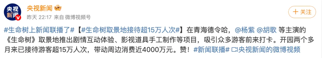 《生命树》取景地登上《新闻联播》,不仅是对作品本身价值的认可,更是对“‘北京大视听’影视赋能地方文旅、带动消费增长”这一路径的充分肯定。