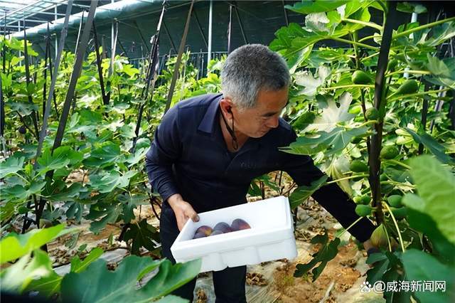 4月的临港,春风拂面。威海临港区汪疃镇硕果家庭生态农场的大棚里,却是一派热气腾腾的丰收景象。一颗颗色泽紫红、饱满圆润的无花果挂满枝头,浓郁的果香在暖湿的空气中弥漫。今年首次试种的“波姬红”无花果迎来了成熟期,园主石海霞正小心翼翼地采摘着这份春日的甜蜜。