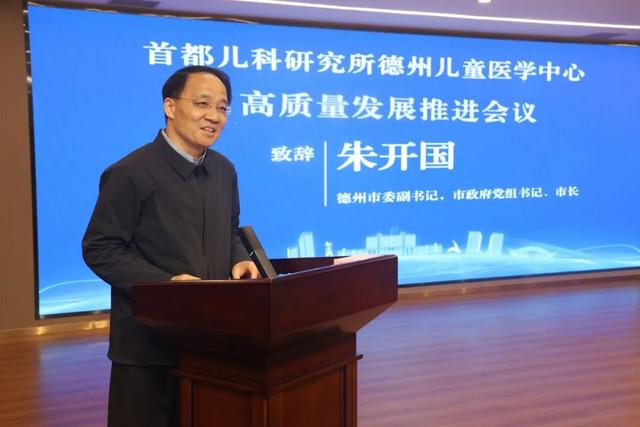 2026年4月11日,首都儿科研究所德州儿童医学中心高质量发展推进会议在德州召开。德州市委副书记、市长朱开国,首都儿科研究所党委副书记、所长张建,农民日报社副总编辑杨志华,山东省卫生健康委党组成员、副主任张延安,妇幼健康处处长刘琳,首都儿科研究所党委委员、纪委书记李春霞,德州市卫生健康委党组书记、主任周春华等出席。会议由德州市政府副市长陈晓强主持。来自鲁冀两省15个卫生健康行政部门和57家二级以上医疗机构190余人参加会议。