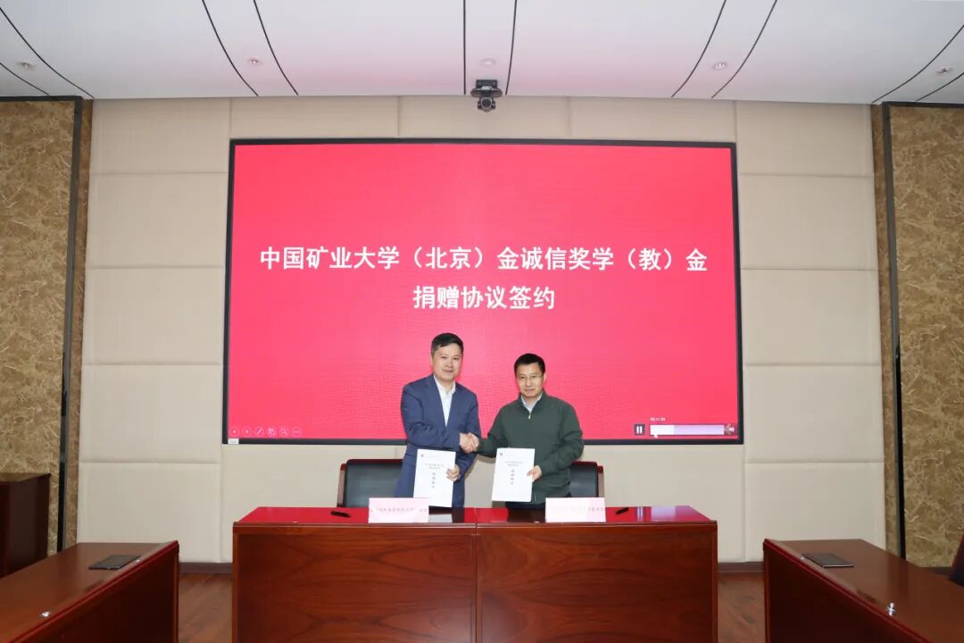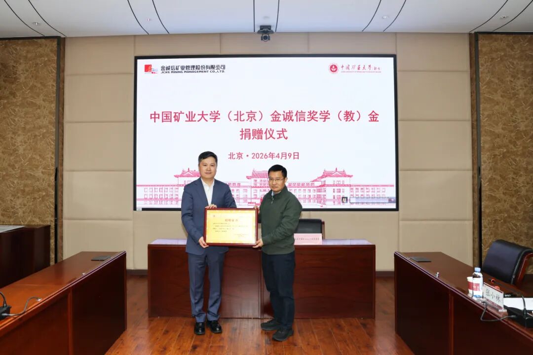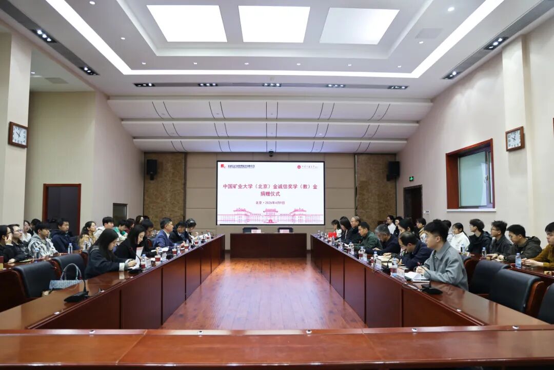 4月9日上午,中国矿业大学(北京)金诚信奖学(教)金捐赠仪式在1号办公楼200会议室举行。校长刘波会见金诚信矿业管理股份有限公司党委书记、董事长王青海一行。副校长汪文生出席仪式。