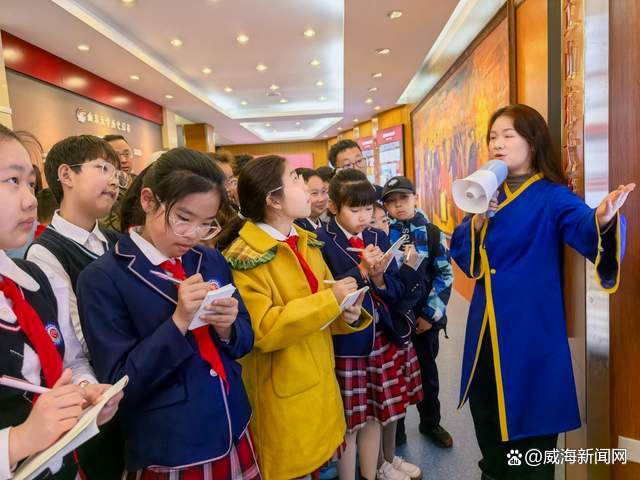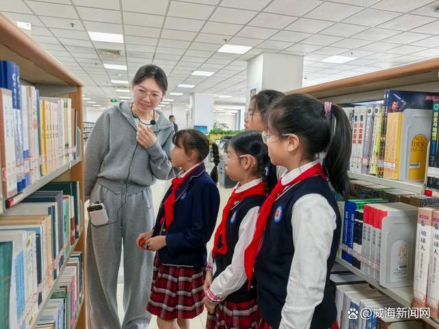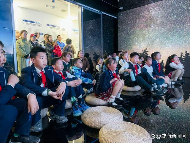 随后,大家走进山东大学(威海)图书馆。这座现代化图书馆以丰富的馆藏和先进的管理模式令学生和家长赞叹不已。据介绍,图书馆馆藏纸质文献超过800万册,同时配备了现代化的管理系统和多媒体操作平台。最受孩子们欢迎的是图书馆内的360度全景科普屏——轻轻点击,宇宙星辰、深海世界、远古恐龙、浩瀚星空便环绕身边,带来沉浸式的阅读与学习体验。孩子们纷纷感叹:“原来图书馆不只是看书的地方,还可以这么酷!”在这里,书香文化与现代科技完美融合,让孩子们真切感受到阅读的魅力和知识的力量。