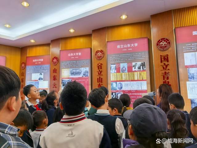 上午9时,参与活动的家庭准时在山东大学(威海)南门集合。研学第一站是校史馆。在讲解员的带领下,学生和家长们认真参观了记录山大百余年发展历程的珍贵图片与实物,聆听了杰出校友的奋斗故事。孩子们被一代代学人严谨治学、报效家国的精神深深打动。一位五年级学生在参观后表示:“原来大学里有这么多了不起的人,我也要好好学习,将来考上好大学。”校史馆的励志教育,如同一粒种子,悄然播撒在孩子们心间。